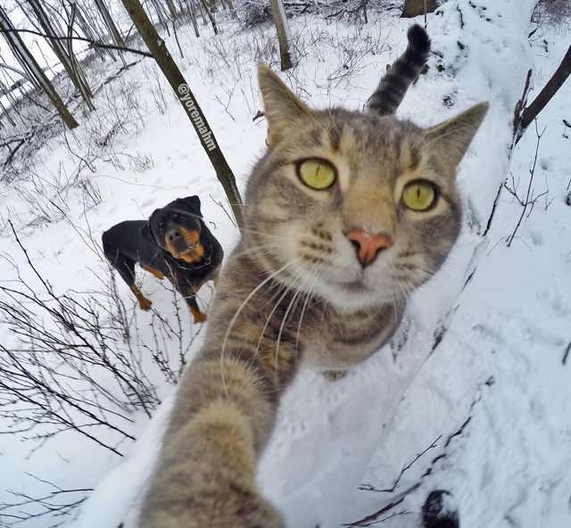 曼尼猫 和他的自拍照变成了 网络轰动。猫并没有意识到这一点,因为它只是喜欢和它玩 GoPro相机,但让我们留下这些小事吧。我们人类所采用的手艺现在显然也被动物所学习,而曼尼猫无疑是“动物”自拍的大师。