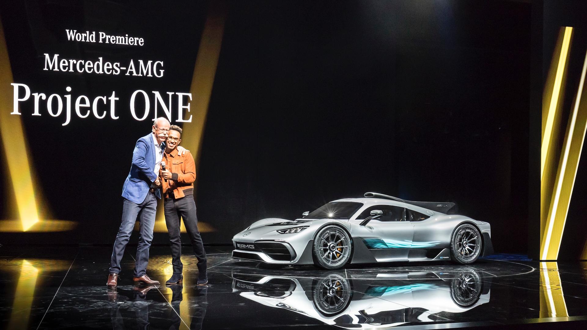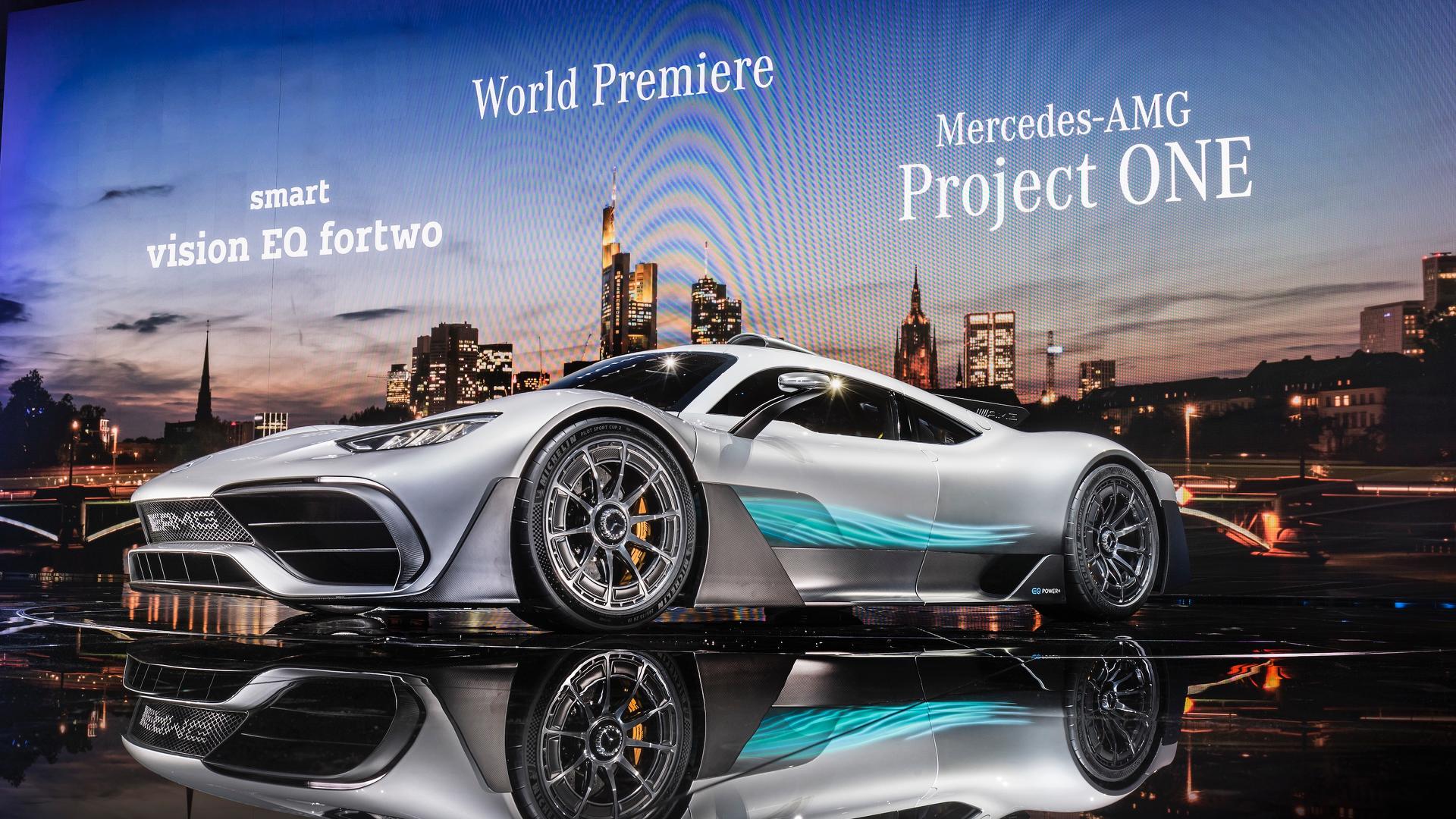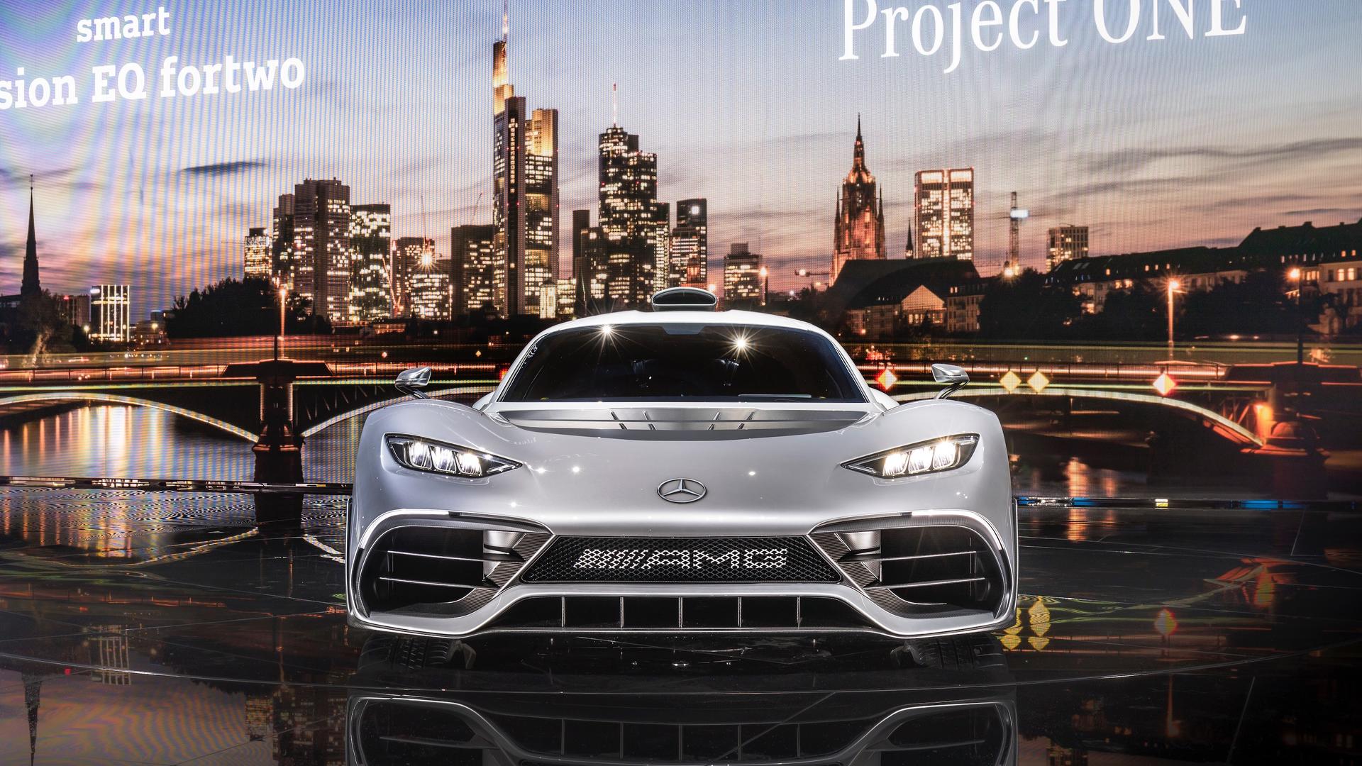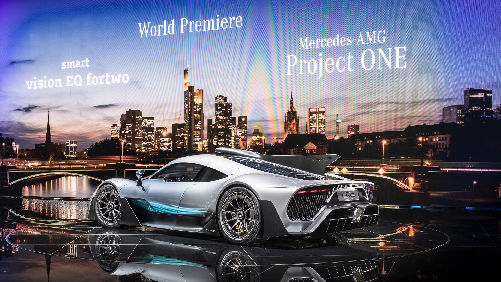 梅赛德斯-AMG Project One 几乎会掩盖梅赛德斯和 AMG 之前的所有成就,因为它是真正的 令人印象深刻的道路杰作外部形式是 极其符合空气动力学 和 完全由碳纤维制成凸起的挡泥板遮住了巨大的车轮,整个车身轮廓低垂至地面。向后倾斜的车顶隐藏在下方 1.6升6缸发动机,直接取自 梅赛德斯一级方程式赛车 旋转到高处 每分钟11,000转。添加到此引擎的是 电动马达,它负责 混合动力电动加速,两台发动机合计传输超过 671马力.