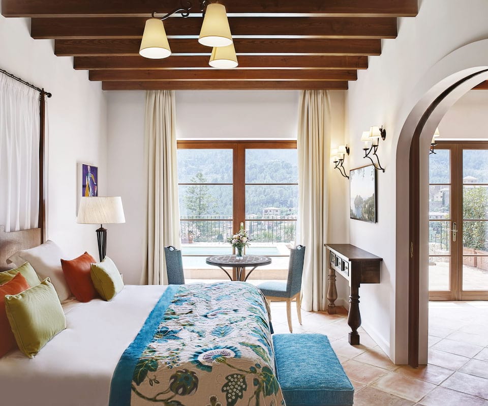 La Residencia 酒店位于马略卡岛美丽的西北海岸,坐落在特拉蒙塔纳山脉 (Serra de Tramuntana) 脚下,掩映于群山与地中海之间。酒店由几座 16 世纪的农舍组成,依山而建,石墙环绕,悬垂式花园与山景浑然一体。室内陈设着深色木质家具和横梁天花板。酒店拥有 67 间客房,均采用传统的马略卡风格装饰:赤土地板、手工雕刻的床。亮点包括一座雕塑花园和两个淡水泳池。
