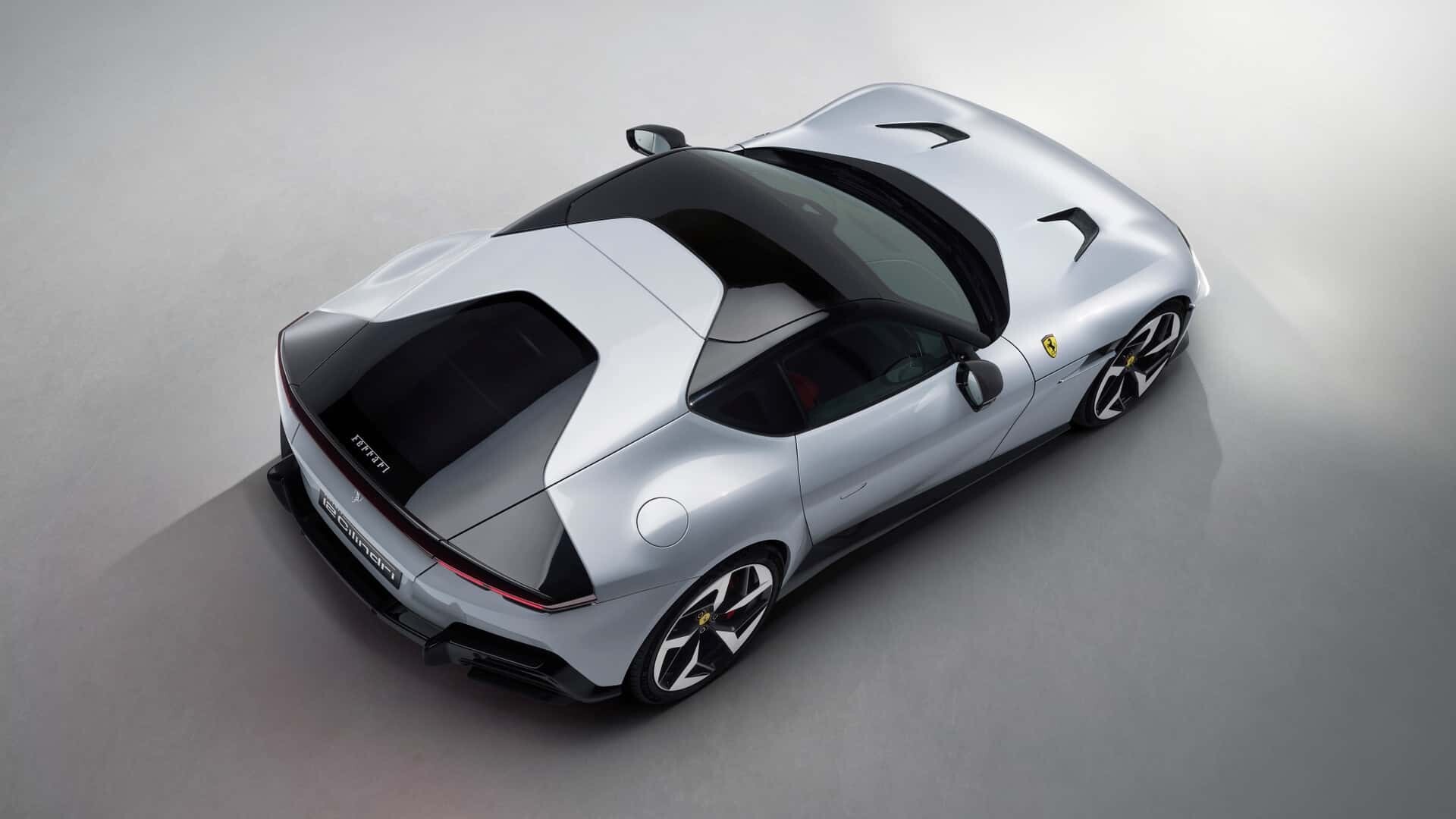 该发动机与 812 Competizione 的发动机类似,但具有一些独特的功能,例如“吸气式扭矩整形”系统,该系统可以电子调节第三档和第四档的扭矩。它与后置八速双离合变速器配合。法拉利声称 30 % 的换档速度比 812 更快。