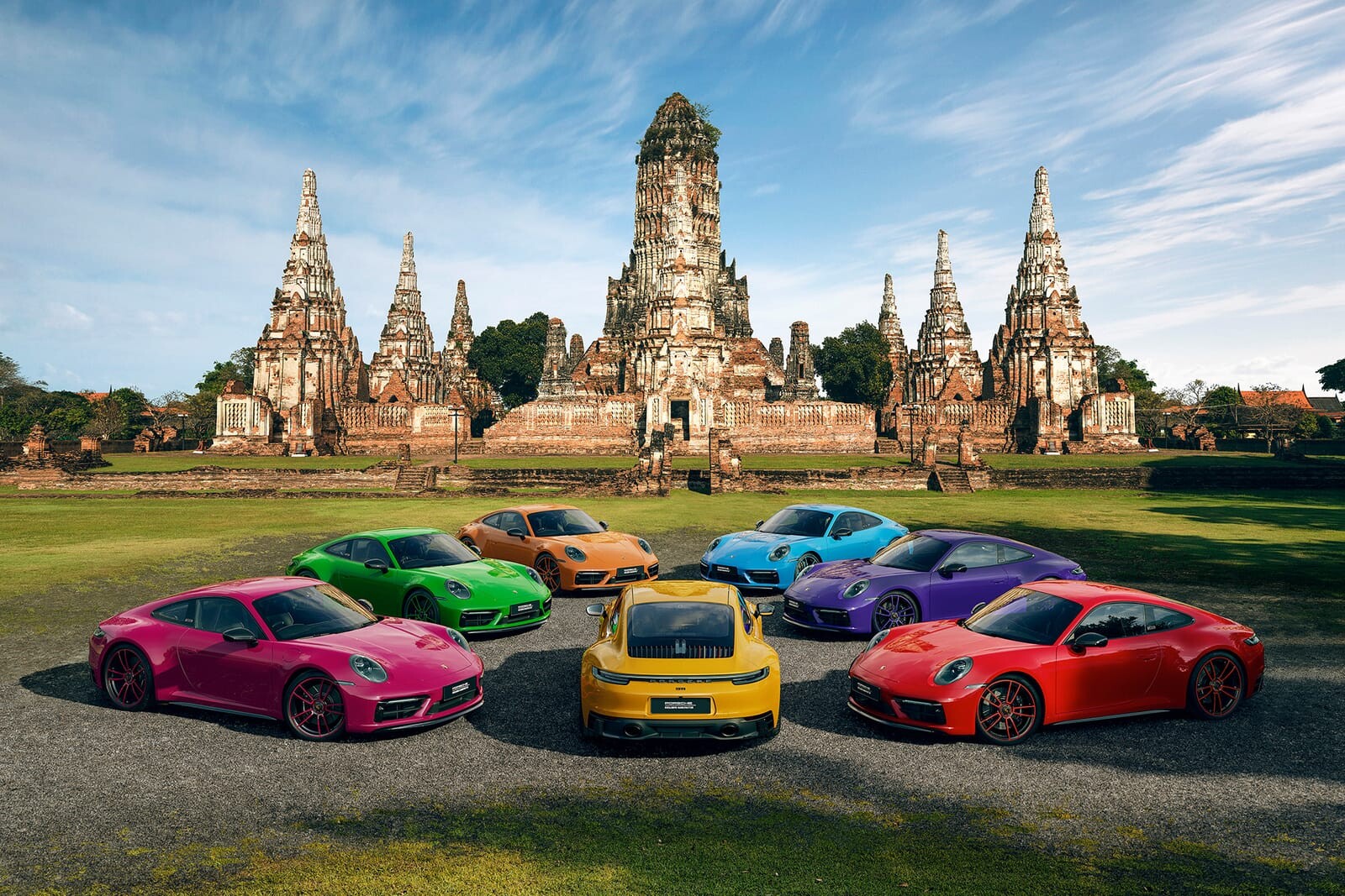 泰国充满活力的文化体现在与一周中的每一天相关的不同颜色中:星期一(黄色)、星期二(粉红色)、星期三(绿色)、星期四(橙色)、星期五(蓝色)、星期六(紫色)和星期日(红色) )。在泰国传统中,一个人的出生日期决定了他的“幸运”颜色。这一著名的实践启发了泰国保时捷 30 周年的口号:梦想色彩。