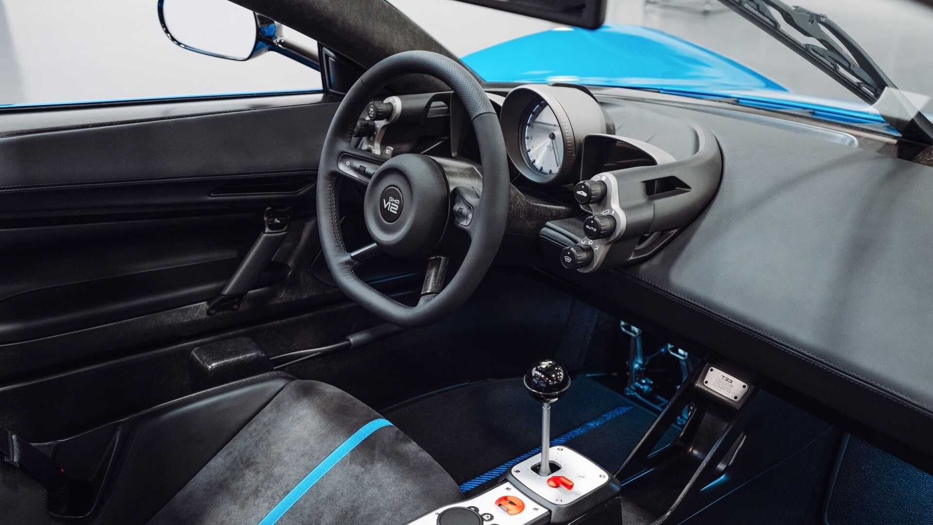 在车内,T.33 Spider 迎接驾驶员 极简主义,而是一个功能齐全的驾驶舱。驾驶员显示屏的中央是一个大型模拟转速表,经过校准 11,100转/分。数字显示屏的其余部分提供速度、档位选择和其他重要数据等信息。 T.33 Spider 高达 295升 的存储空间,对于这种尺寸的跑车来说非常实用。