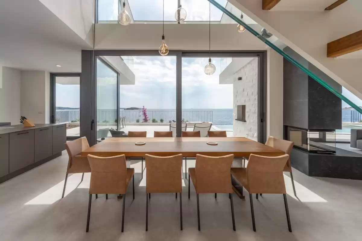 它是房地产界真正的时尚偶像。其内饰融合了现代设计和传统达尔马提亚元素。宽敞的客厅配有巨大的玻璃窗,就像阳光照射下的T台。厨房呢?如果有一个超模厨房,那一定是 Vila Esperia。但让我们深入了解细节。