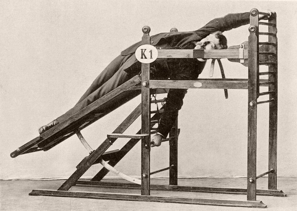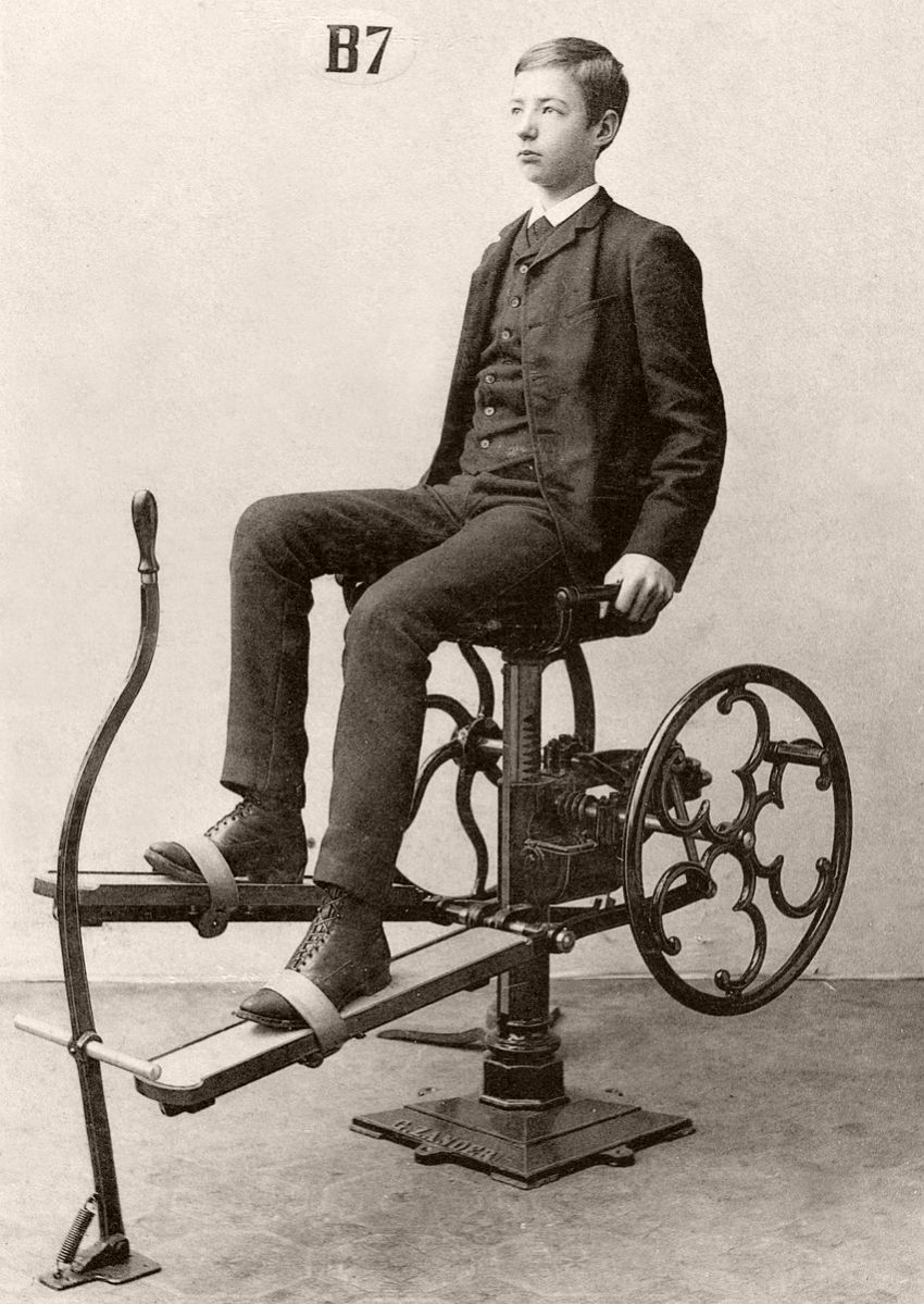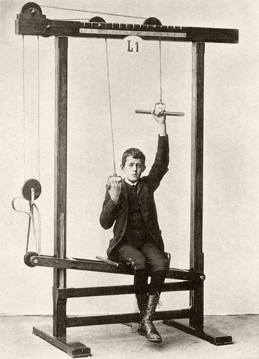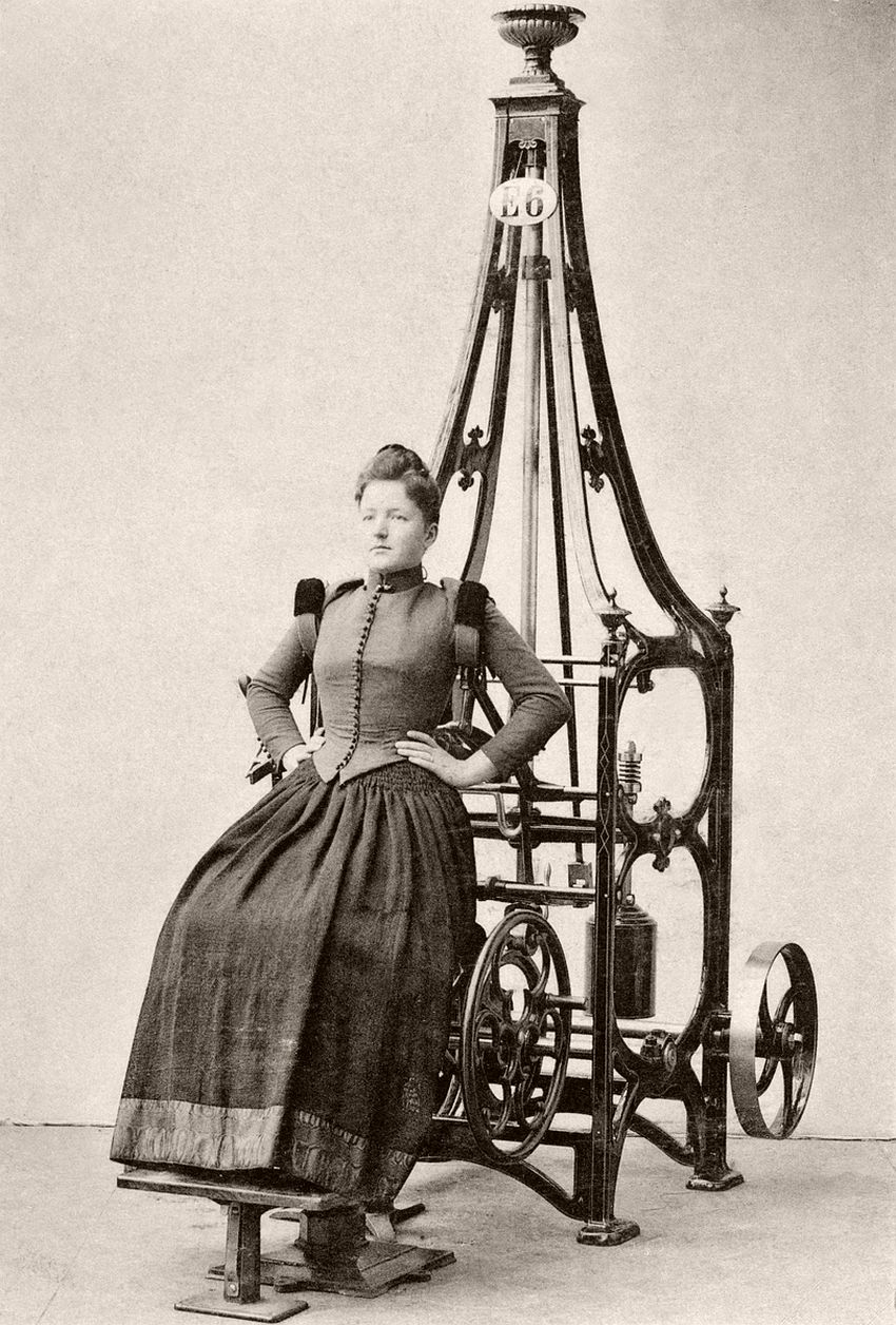 赞德制造了一些带有配重、手柄和弹簧的木制机器,人们可以用它们来锻炼。他为那些感兴趣的人提供了如何使用它们的说明,就像今天的私人教练所做的那样。随着时间的推移,设备变得越来越复杂,因此其中一些设备的操作 1868 也使用了蒸汽机,因为 1890 和电动机。