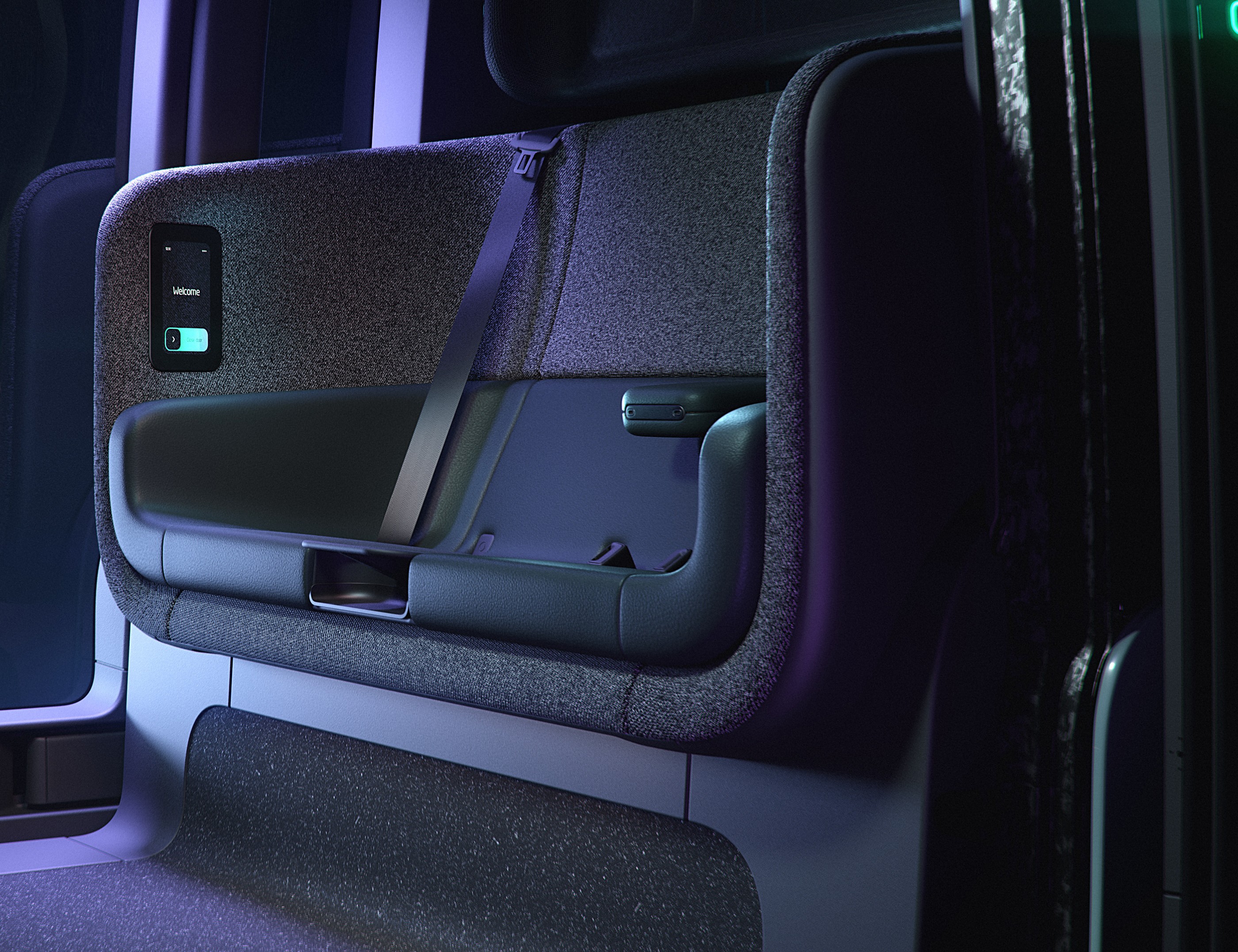 该公司尚未透露有关机舱的许多细节。但这辆车充满了细节,因为它有一个模仿星星的发光天花板,就像豪华劳斯莱斯一样。乘客可以使用无线智能手机充电器和提供音频控制和目的地信息的触摸式信息娱乐系统。