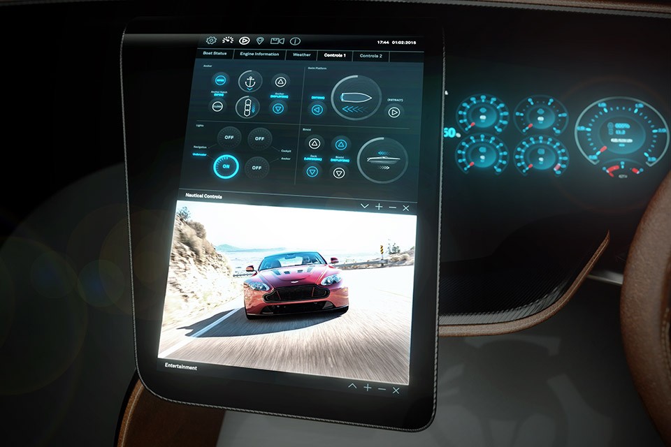 就像阿斯顿·马丁汽车一样, 11米快艇 AM37 采用高科技复合材料制成, 碳纤维 (最明显的是滑动车顶,不使用时可以方便地覆盖整个甲板)。客房配有空调、冰箱、 浓缩咖啡机,可远程操作,导航系统,控制屏幕和 15 英寸触摸屏 用于娱乐内容。 AM37 的弱化版本达到最高速度 44节 (81公里/小时), 52节 或者说 96 公里/小时是更强大版本可以达到的最高速度 AM37系列.