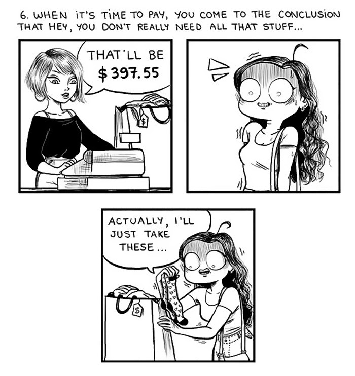 Ženske, se želite malce nasmejati na svoj račun? Moški, želite vedeti, kakšne muke ženske prestajajo med nakupovanjem spodnjega perila? Potem si oglejte prikupne ilustracije ilustratorke C. Cassandre, v katerih ta na zabaven način obrazloži, zakaj je za ženske nakupovanje spodnjega perila prava nočna mora.