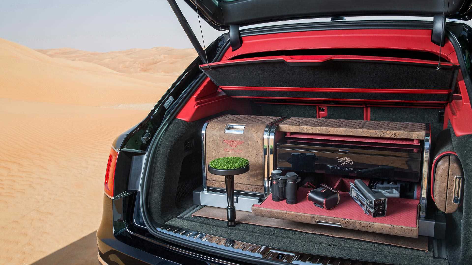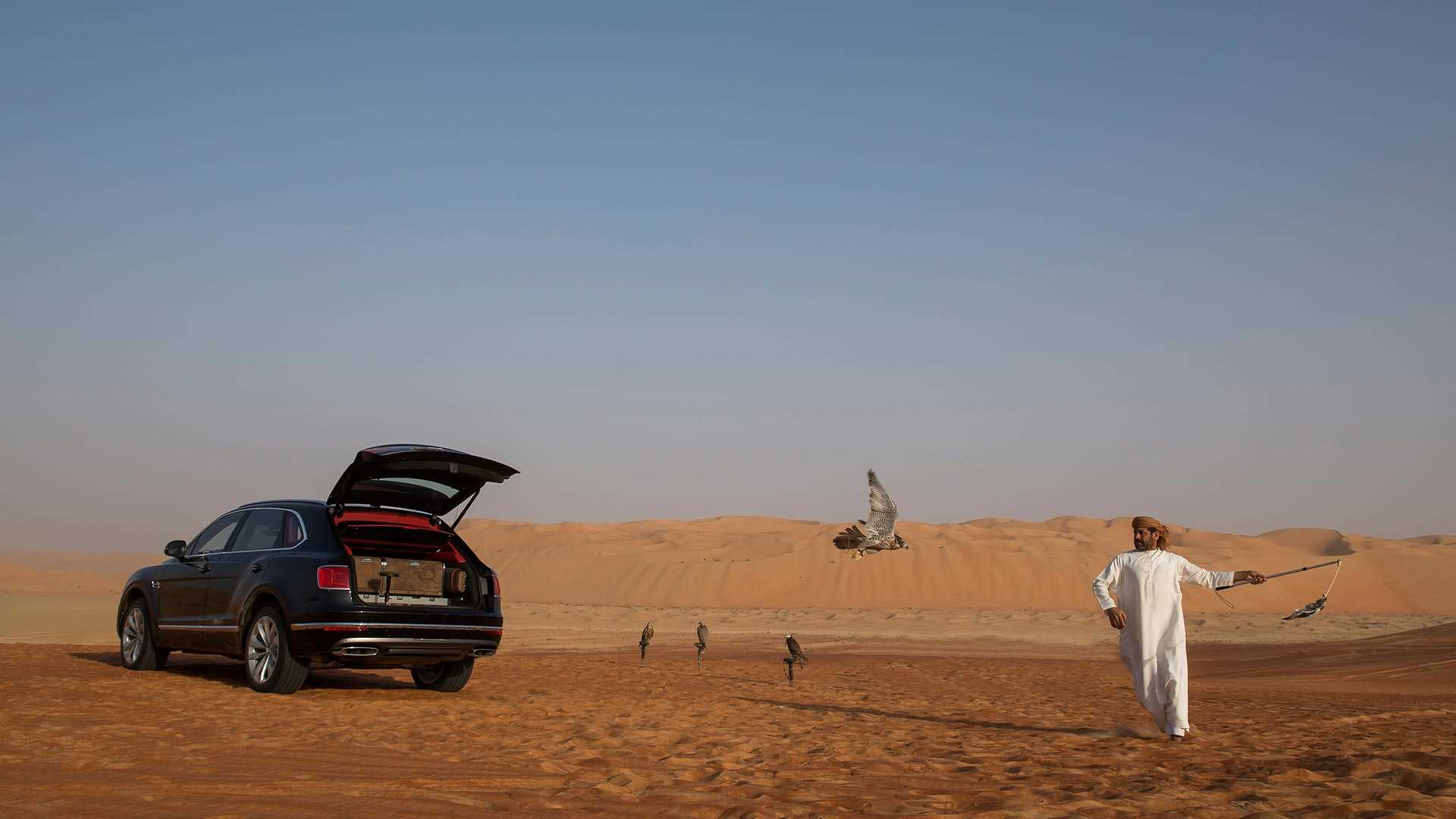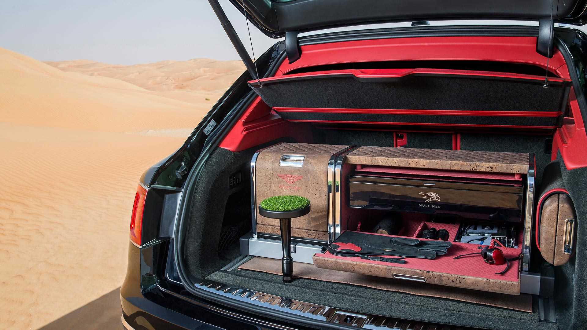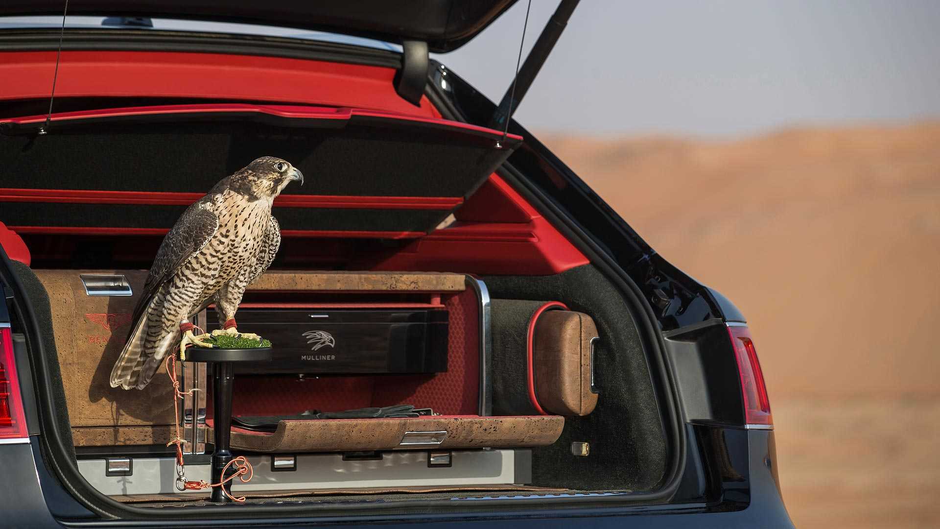 Lov s pticami ujedami je na bližnjem vzhodu rezerviran za vladajoče ljudi in temu primerno je tudi Bentayga razkošna in luksuzno opremljena. Za tega posebnega 宾利 je zaslužno podjetje 穆林纳, ki je znano po svojih predelavah in izdelavah ekskluzivnih vozil. Avtomobil je unikaten in namenjen ljubiteljem ptic ujed, saj se vse vrti okoli njih. Kar v sredinski konzoli je nameščeno prenosljivo ptičje stojalo, tako da vam bo pernati sopotnik vedno ob strani. V armaturno ploščo je vdelana intarzija s podobo puščave in sokola, ki je narejena iz kar 430 kosov lesa. Prtljažni prostor zasedata dve plutovinasti omarici, v katerih se nahaja vse potrebno za delo s pticami. Prva vsebuje daljnogled, GPS-sistem za lociranje ptice, kapuco za njeno glavo in še zaščitno rokavico za vas. V drugi boste našli odejo, skodelice in termosteklenice.