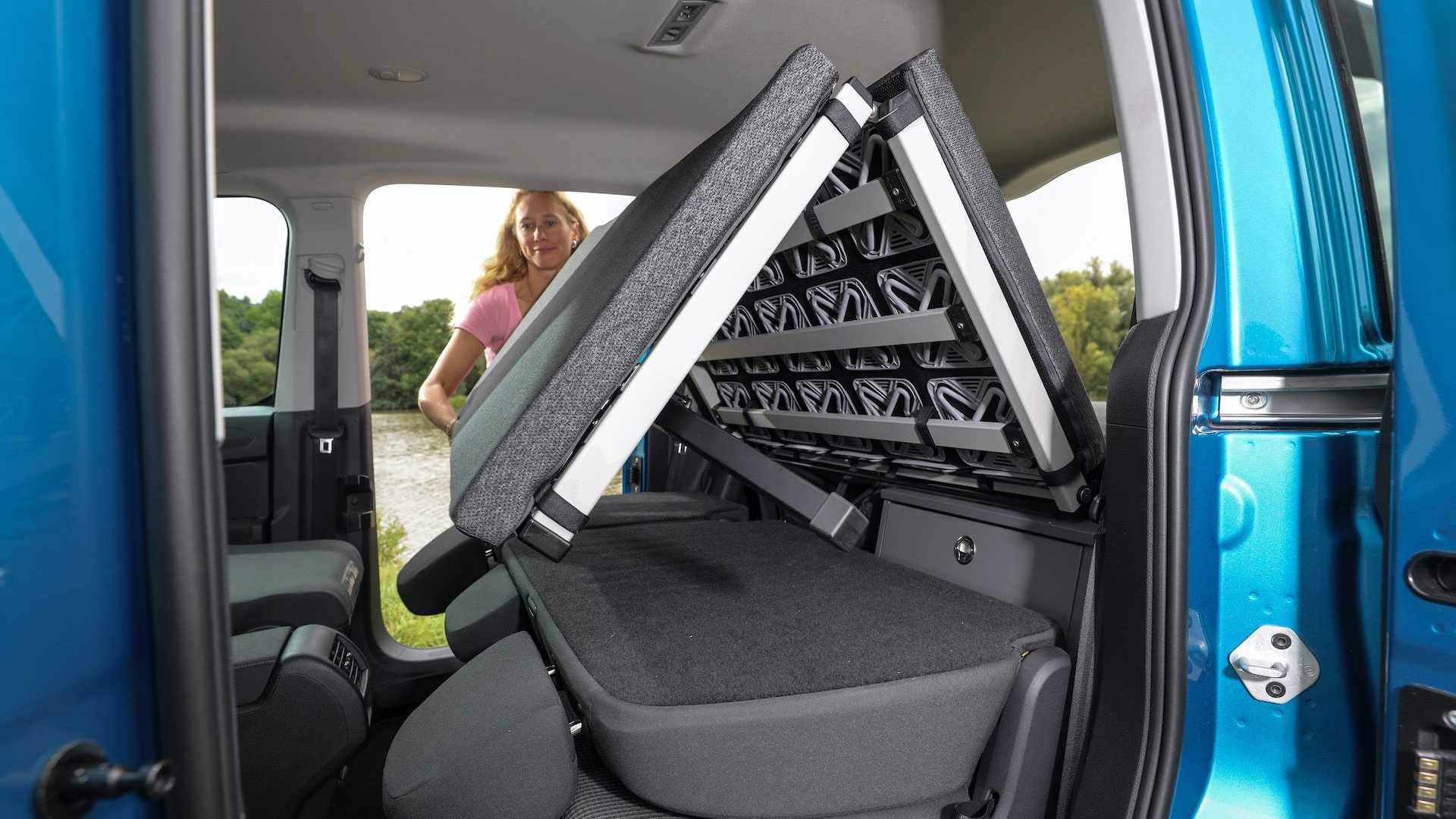 Tako majhni kombiji se redko uporabljajo kot podlaga za avtodome, Volkswagen pa se je pri svoji zasnovi soočil s številnimi izzivi. Popolno udobje seveda ni bilo mogoče, a Caddy California vseeno z njim preseneti vse. Ta avtodom ima tako zložljivo posteljo velikosti 198 x 107 cm, ki je sicer zelo kompaktna, pa vendar zaradi posebnih pateniranih vzmetnic in žepkastih vzmeti zagotavlja enako udobje kot postelje v večjih modelih Californie. Postelja ni del druge vrste sedežev, zato jih lahko pred začetkom potovanja odstranite, da dobite več prostora.