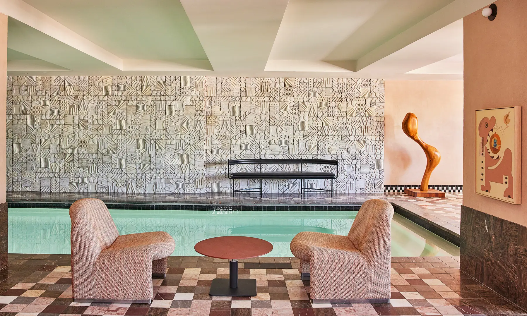 Downtown Proper predstavlja mojstrsko fuzijo arhitekturnih slogov, ki združuje urbane opečne elemente z maroškimi oblikovalskimi poudarki in elegantnimi ploščicami. Hotelsko preddverje vas popelje na potovanje skozi čas s stropnimi freskami, ki se poklanjajo špansko-mehiškim koreninam, ki so temelj bogate dediščine Los Angelesa.