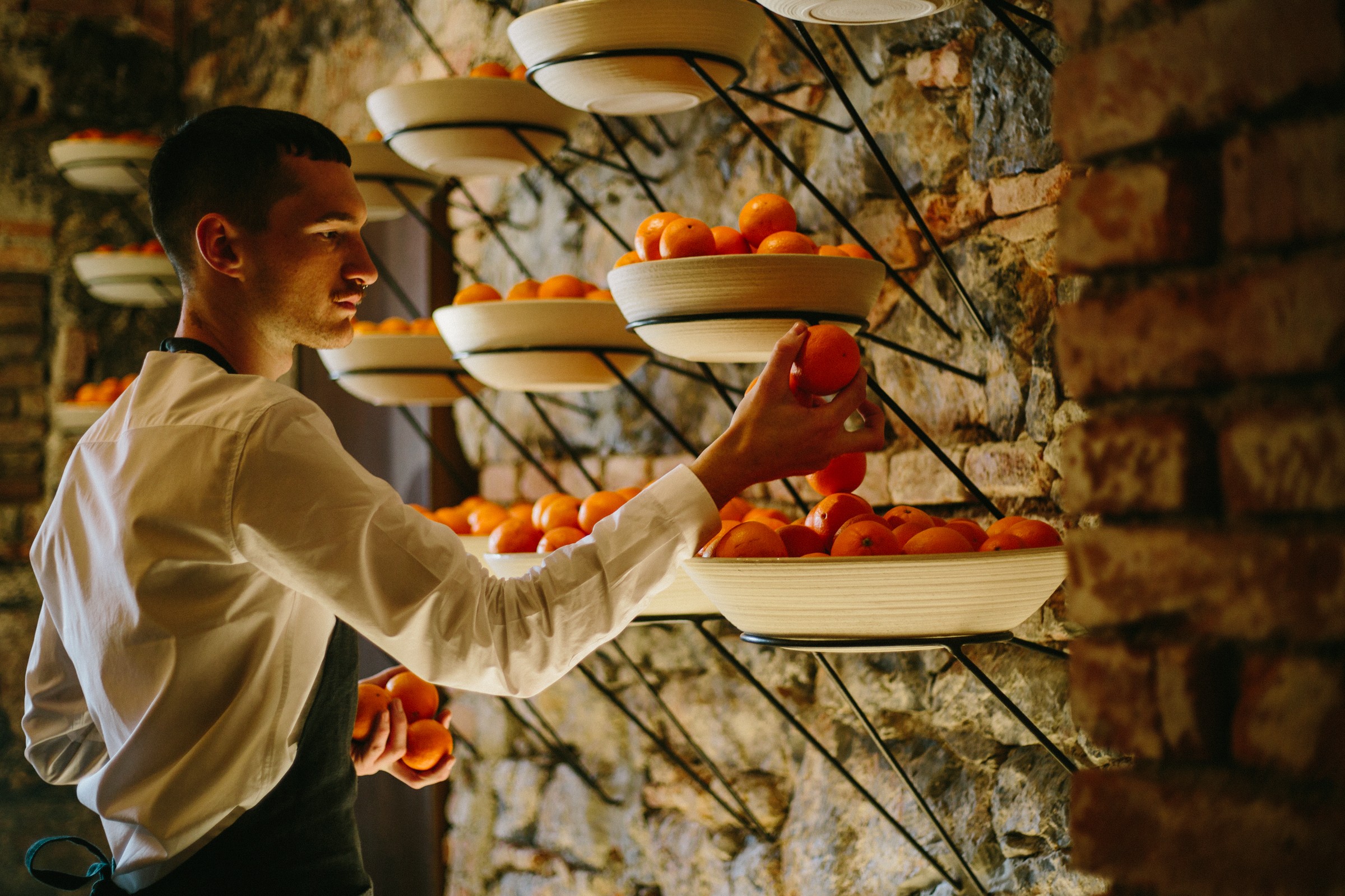 Koncept ponudbe je bil tudi izhodišče za arhitekturno zasnovo bistroja, ki je delo ljubljanskega studia Dekleva Gregorič arhitekti. Ta je sledil načelu ‘raje razkriti kot prikriti’, torej čim manj posegati v obstoječi značaj prostora in tako ohraniti njegovo prvinskost. Takšno vodilo se kaže v uporabljenih materialih – železu, cortenu, lesu, marmorju, granitu in bakru. Posebnost zasnove je razstavna stena s črnimi nosilci in skledami, ki podpirajo bistvo kuhinje Eka: izbrane sestavine in jedi ter izdelke za domov.