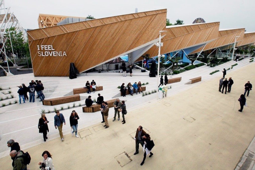 在 2015 年米兰世博会上,斯洛文尼亚并没有被忽视,专业建筑出版物对我们的展览空间或展馆给予了热情的报道。展馆采用五种棱柱形设计,放置在几何形状各异的表面上,其形状类似于工作表面。该展馆代表了斯洛文尼亚的地理景观,象征着可持续发展基本理念的增长。斯洛文尼亚馆的口号是“我感受斯洛文尼亚。绿色。活力。健康。”