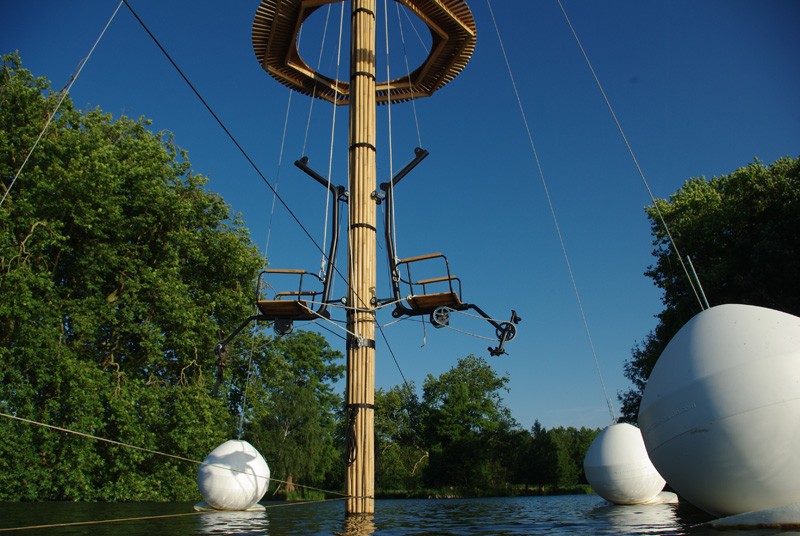 艺术家兼设计师Florent Albinet在法国埃松市Domaine de Chamarande的La Juine漂流河中央设置了一个有趣的装置,这是一座带有升降机构的迷你塔,可以通过踏板到达塔顶。加比 (Gabie) 6 米高的绞车塔将向公众开放,直至 2015 年 11 月 1 日。