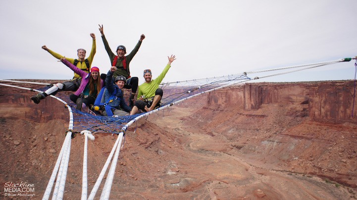 “Mothership Space Net Penthouse” je peterokraka viseča mreža živopisanih barv, ki jo je skupini BASE skakalcev (skakalcev iz stoječih objektov), vrvohodcev in slackerjev ob pomoči naključnih prostovoljcev uspelo razpeti nad puščavo Moab. Kljub več kot 50-im parom rok pa so jo pletli kar tri dni.