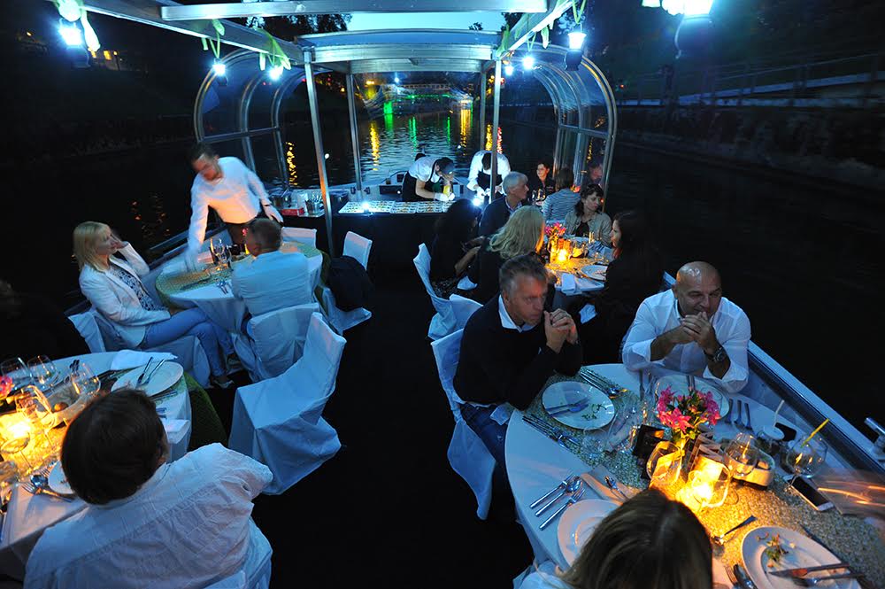 Večerja na ladjici vključuje 5-hodni meni chefa Igorja Jagodica ob spremljavi vin domačih in tujih vinarjev.