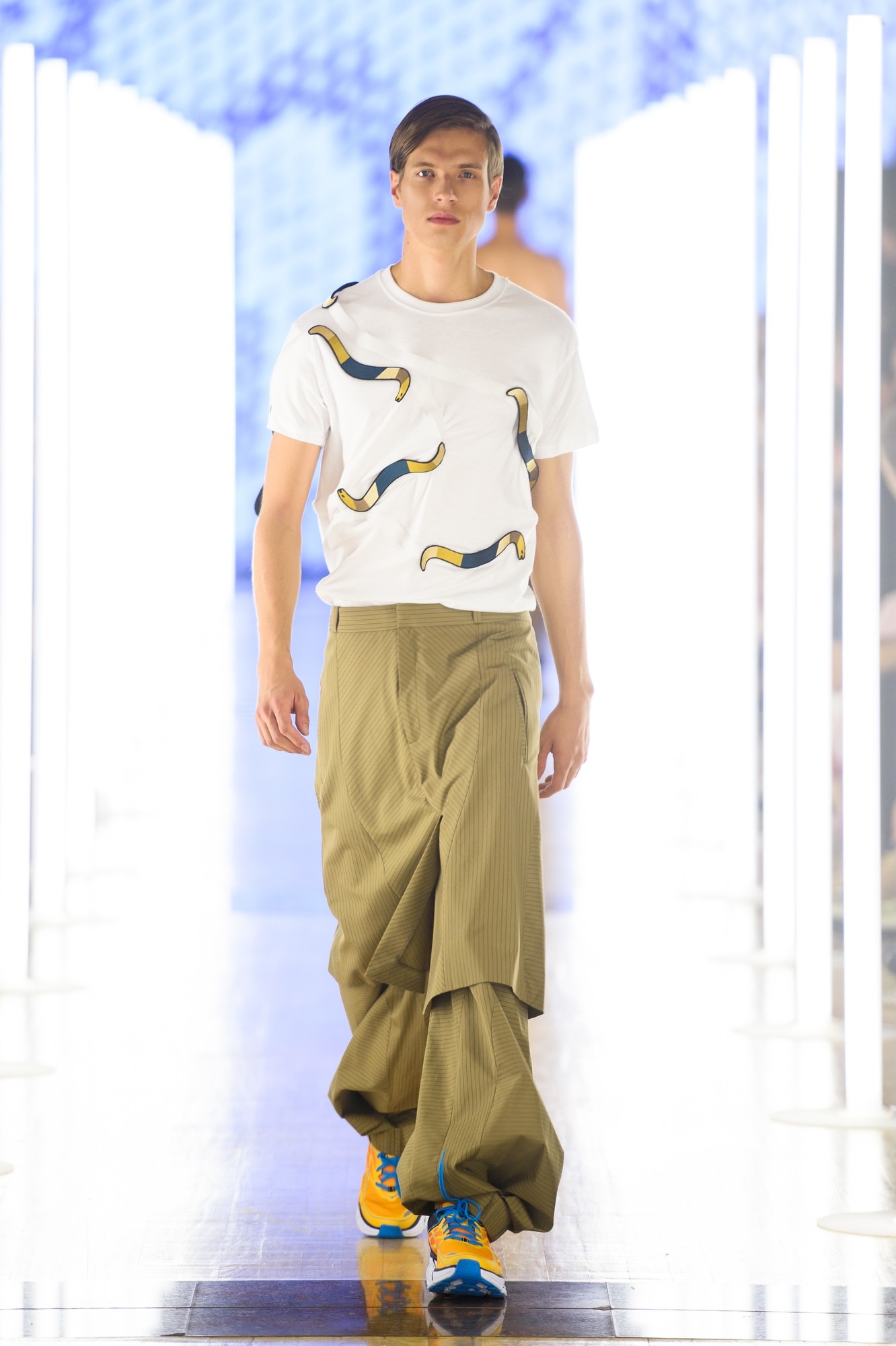 “Kolekcija 17SS predstavlja raziskovanje simbolike ter fizičnih lastnosti kač skozi naravne kroje, teksture, vzorce, tekstilne manipulacije in silhuete na humoren način. Moška kolekcija se spogleduje z opravami kontroverznih pripadnikov gibanja zoot suit s sodobnim pridihom in igrivimi detajli. Se teh izmuzljivih bitij bojimo, ker ne razumemo njihovega gibanja? Hladnega otipa, neprijetne luskaste strukture njihovih kož, svarilnih ali kamuflažnih barv? Gojimo odpor do vsega, česar ne poznamo/razumemo najbolje? Ali pa se mogoče bojimo le posameznih podobnosti s tistimi »kačami«, ki jih nosimo v sebi in zaznavamo v drugih?”