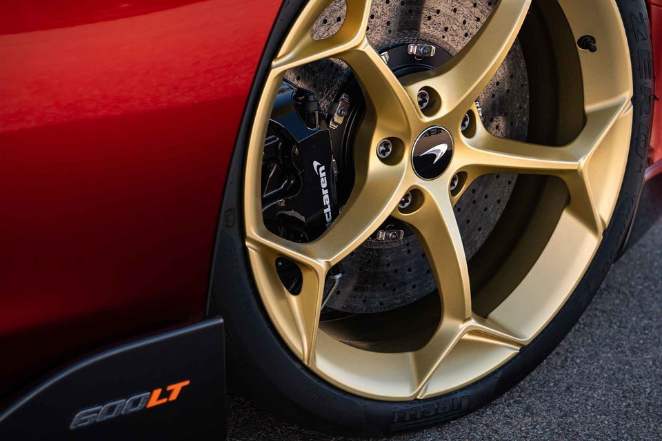每个人 McLaren 600LT Spider MSO Pikes Peak ne samo, da ima dolgo ime, temveč se zaradi posebne barvne sheme razlikuje od ‘običajnih’ zverin McLarnen 600LT Spider – 6 unikatnih Pikes Peak avtomobilov so obarvali vsakega v svojo barvo, vsem pa so skupne zlate in mat črne črte, ki se vlečejo čez ‘pokrov motorja’ in streho.