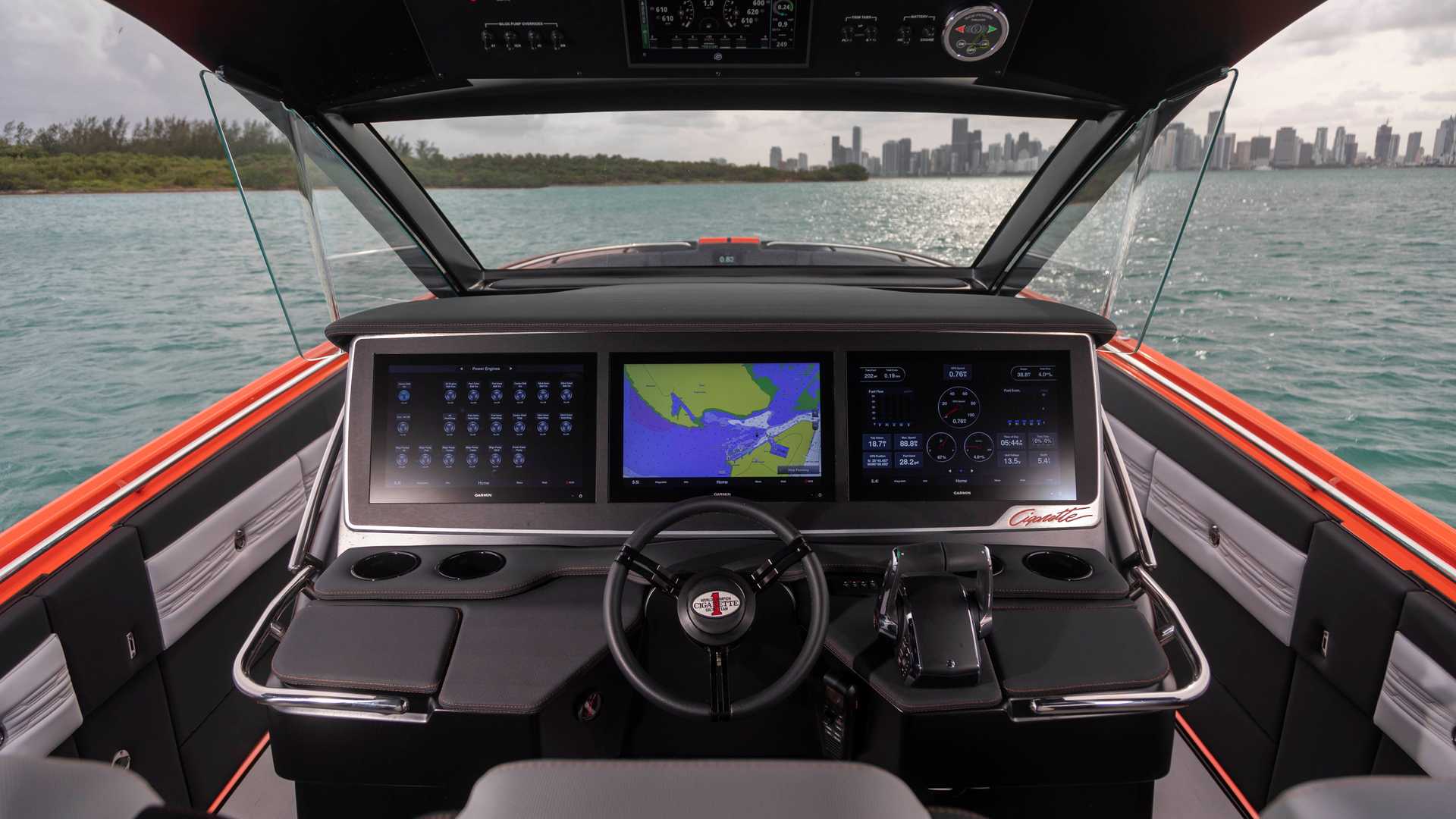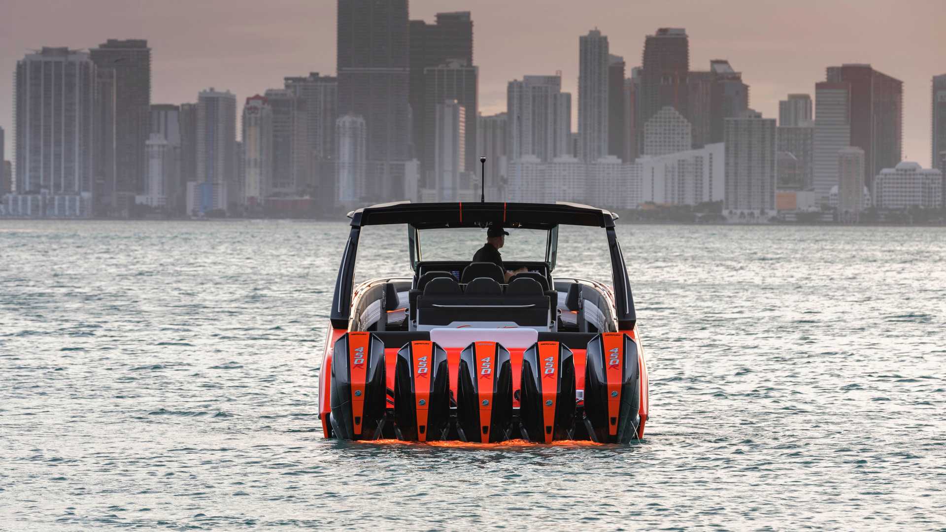 Unikatni Mercedes-AMG Cigarette Nighthawk AMG Black Series 这是 41 čevljev (12,5 metrov) dolga vodna zverina, ki svoj navdih, predvsem pa zmogljivost, jemlje pri cestnem dirkaču iz Mercedesovega športnega oddelka AMG. Čoln poganja kar 5 4,6-litrskih V8 Mercury Racing 450R motorjev. Vsak izmed njih ima kar 450马力, vsi skupaj pa pridelajo osupljivih 2.250 konjskih moči. Moči je tako dovolj, da lahko čoln po vodni gladini drvi z izjemnimi 144 km/h in celo pri tej hitrosti, bo na mirnem morju vožnja še vedno prijetna in ne prenaporna. Napreden krmilni sistem omogoča kapitanu upravljanje vsakega motorja posamično, ali pa upravljanje vseh skupaj, kot 所有的.