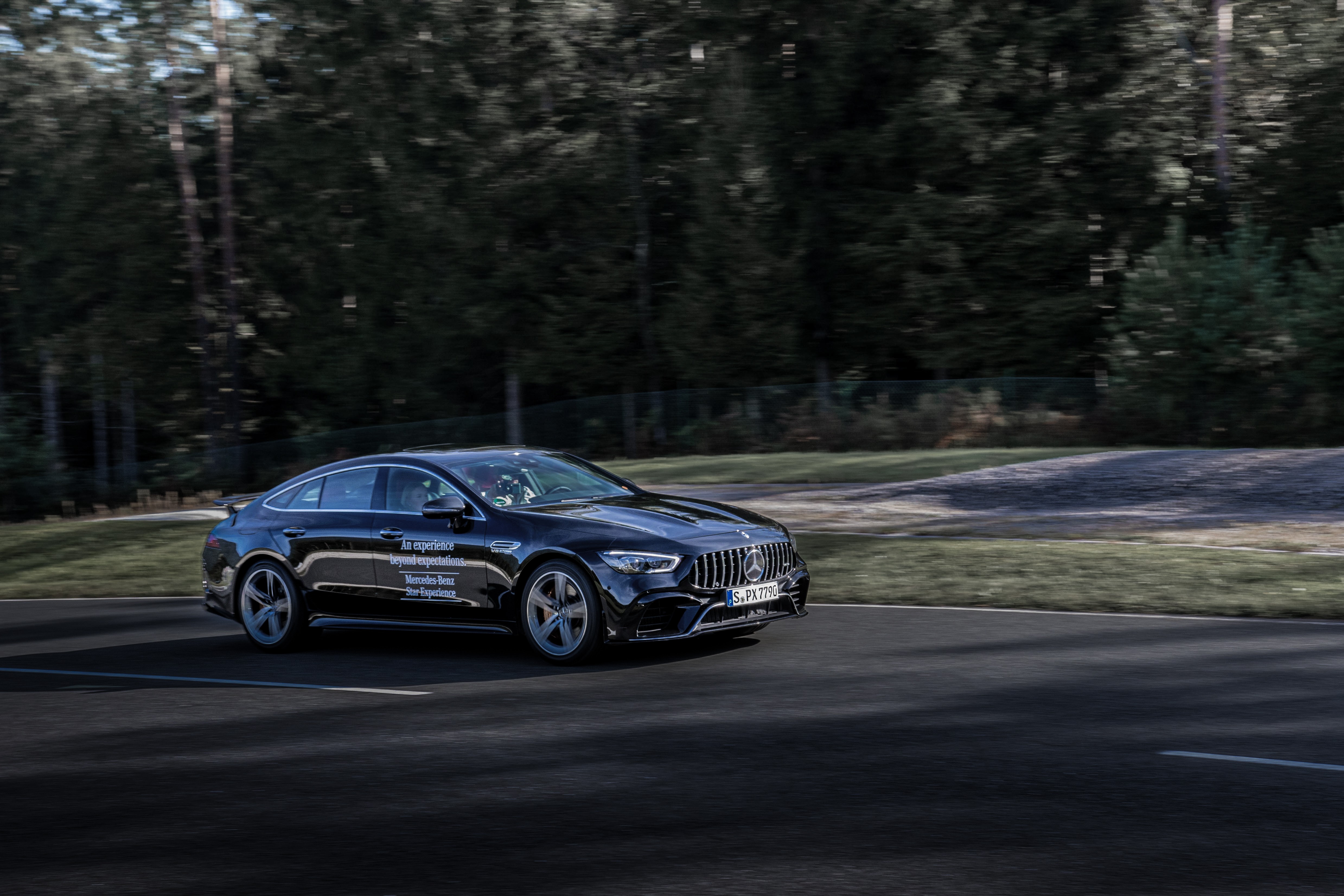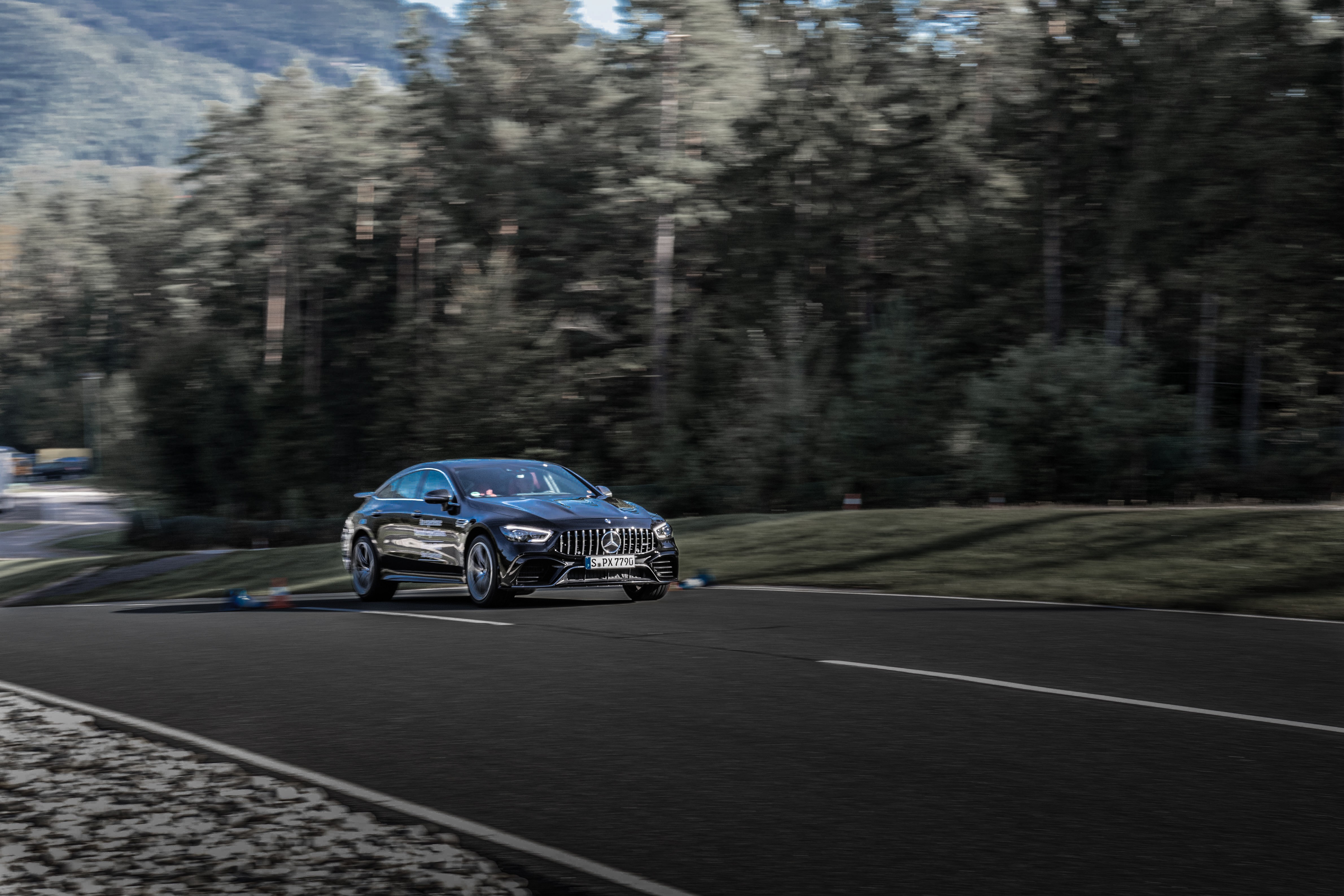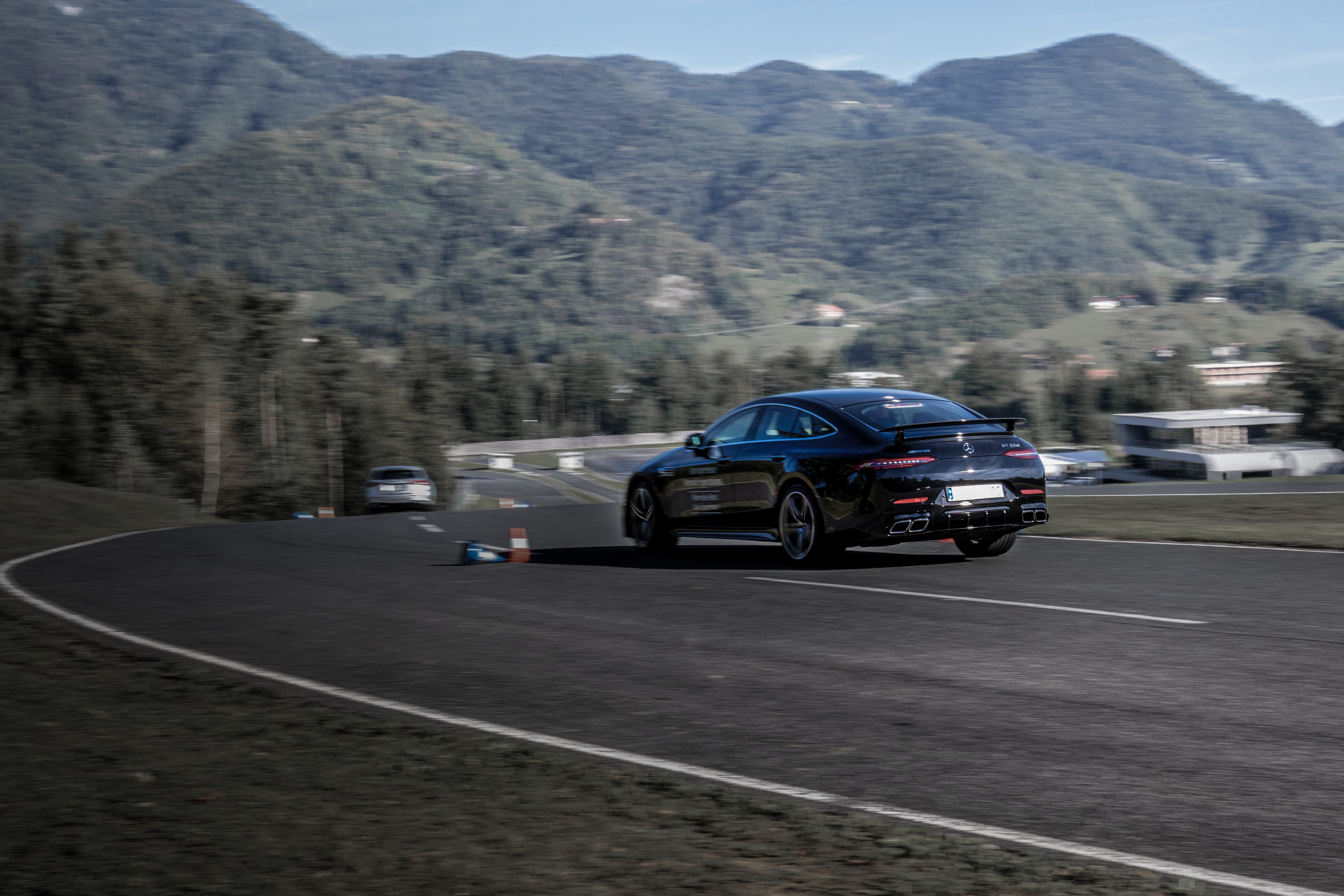 GT 4-door je kot najbolj premijski model družine AMG navduševal z vrtoglavimi pospeški (od 0 do 100km/h v 3,1 sekundi), ki jih omogoča biturbo 8-valjnik s 630 (470 KW) konjskimi močmi in udobjem, morda primerljivim z razredom S. Na postavljenem poligonu se je “kot doma” počutil mali A 35. Čeprav premore “samo” 306 konjev (225 KW), je zaradi občutno manjše teže in nekoliko bolj grobega podvozja bolje opremljen za napadanje šikan in ostrih ovinkov.