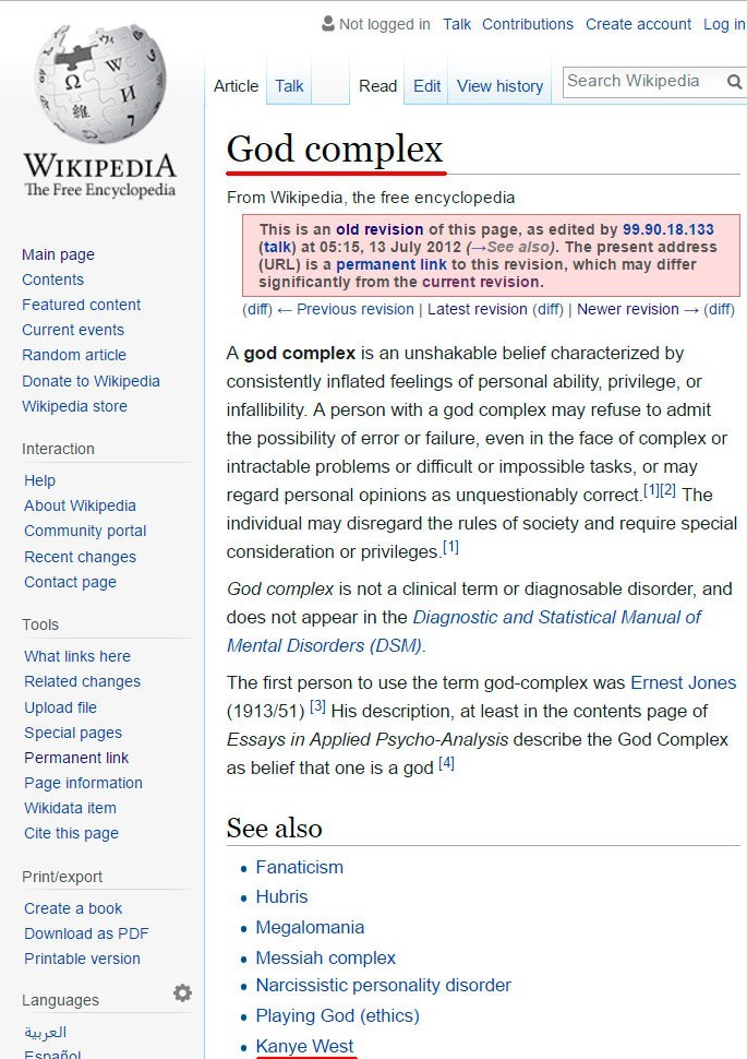Nekdo si je drznil zapisati, da je Charlie Sheen pol človek pol kokain, nekdo pa je ustvaril članek na Wikipediji, ki se posveča kompleksu Boga in oziroma božjemu kompleksu, v to kategorijo je med drugim umestil tudi Kanyeja Westa. Na srečo takšne spremembe ne ostanejo dolgo, moderatorji jih namreč precej hitro opazijo, in to še preden ugledajo luč sveta. In da bi vam pokazali, kako smešna in drzna so lahko včasih ta urejanja, smo v galerijo umestili nekaj tistih najbolj zabavnih.