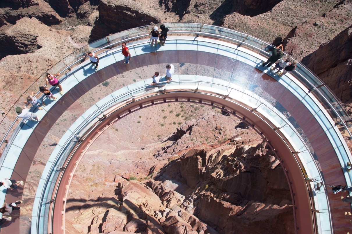 Razgledna ploščad Grand Canyon Skywalk je dostopna z vožnjo po makadamski cesti, za sprehod po podkvasti ploščadi, ki štrli 21 metrov čez rob 219-metrskega prepada, pa boste morali odšteti 85 ameriških dolarjev.