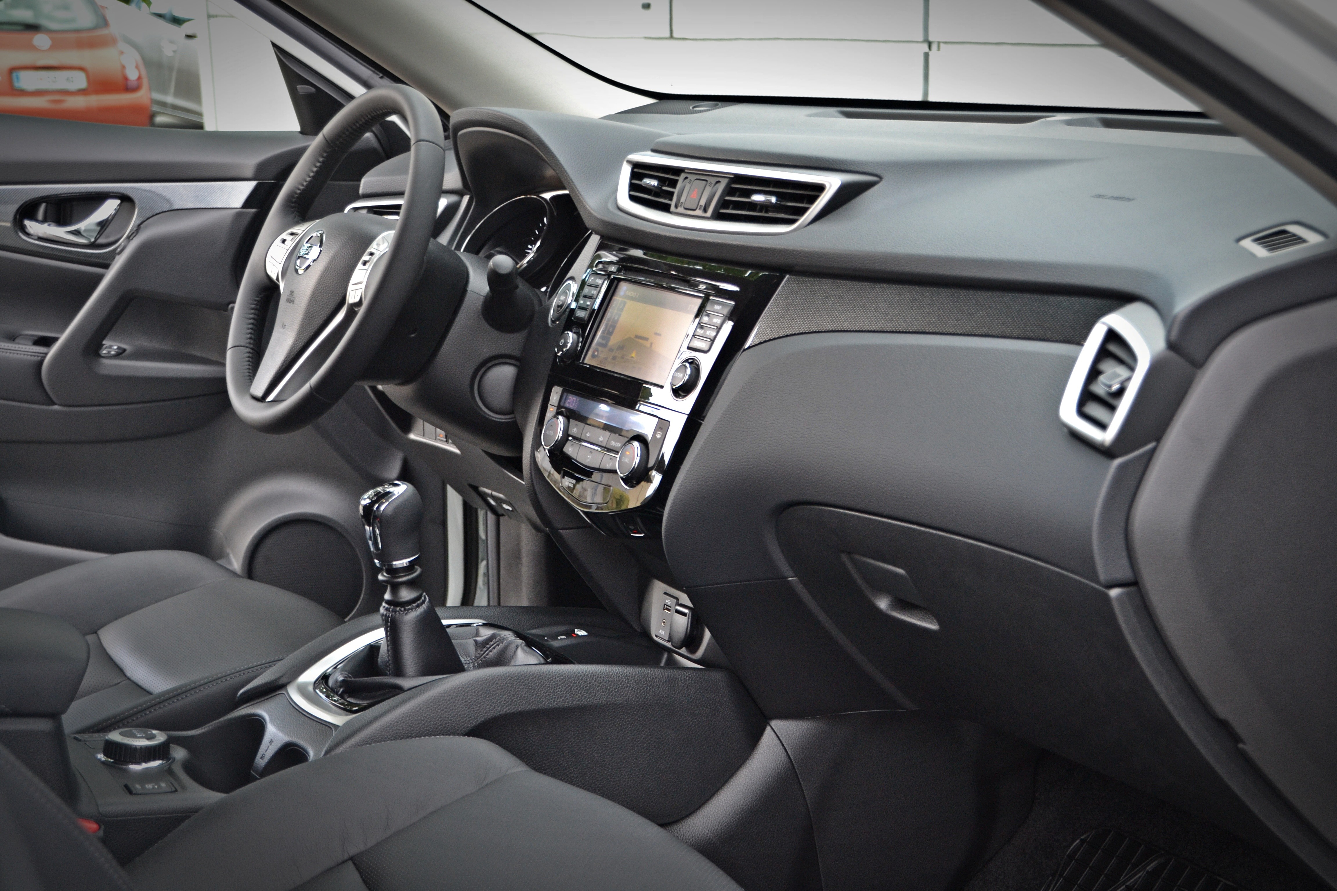 Tudi v potniški kabini je možno številne vzporednice iskati in najti z qashqaijem. Na velikem ekranu na dotik voznik s pomočjo 360 stopinjskega pogleda, ki ga zagotavljajo kamere, spremlja dogajanje okoli vozila, ali pa razbira podatke iz navigacije, ki so mu na voljo tudi na 5-palčnem ekranu med merilniki. Slednji vozniku omogoča še nadzor nad tlakom v pnevmatikah, nadzorom podvozja, trdoto volana, pregled nad varnostnim ščitom. Novost v X-trailu v primerjavi s predhodnikom je električno strešno okno, povezljivost zagotavlja druga generacija 系统 nissan connect, v novinca so vgradili že znani varnosti ščit s 一堆辅助系统, ki vožnjo naredijo udobnejšo in varnejšo.