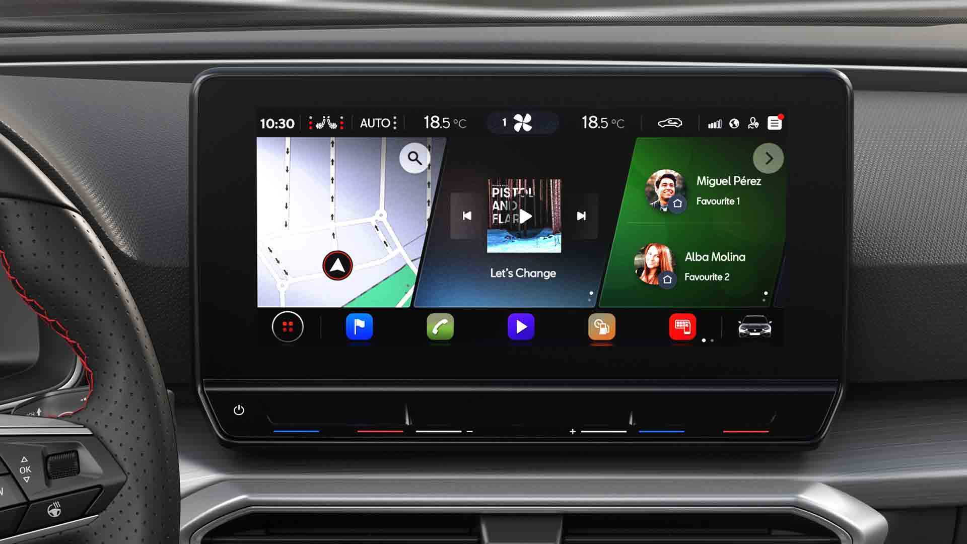 Tako kot pri ′sorodnikih′ iz Nemčije in Češke, bo imel tudi novi SEAT Leon možnost prednjih in zadnjih 车头灯 v popolni tehnologiji LED, ki bodo na voljo s priljubljenimi aktivnimi smerokazi. Novi Leon bo prvi ′popolnoma povezani′ avtomobil pri znamki SEAT. Voznikov zaslon v velikosti 10.25 英寸 bo pospremil še 8- 或者 10英寸 zaslon na dotik, za potrebe informacijsko-zabavnega sistema. Povezljivost v tem primeru pomeni, da bosta na voljo 安卓 车, 苹果 车载应用 in kopica 应用, 收费 和 连接 pametnih telefonov pa bo potekalo 无线地.