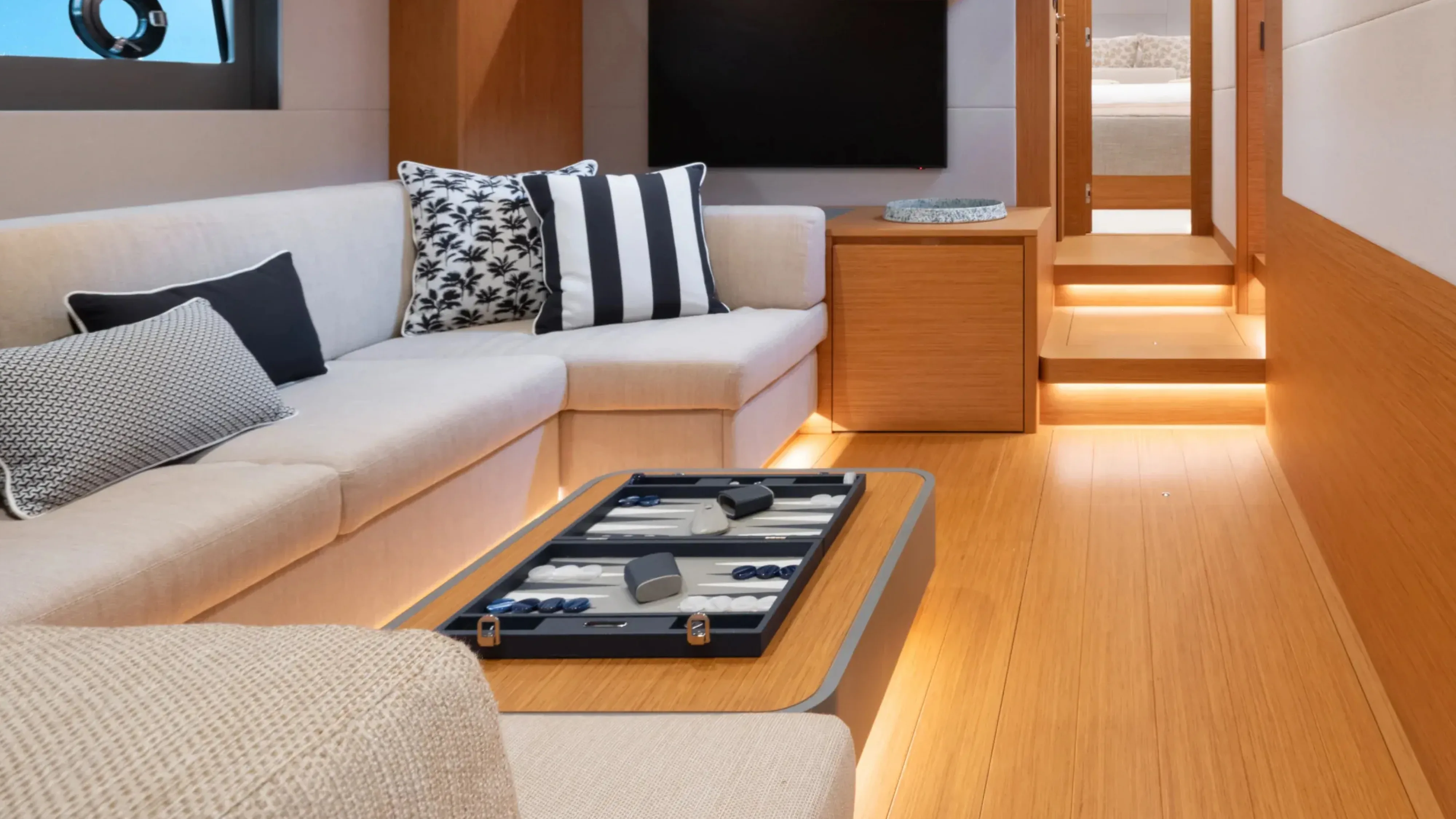 踏入下层甲板,您会被其空间的利用所震撼。“厨房下层”布局中,宽敞的厨房配备大型冰箱/冰柜、带微波炉的烤箱、电炉、洗碗机,甚至还有一个专门用于放置Nespresso咖啡机的抽屉。