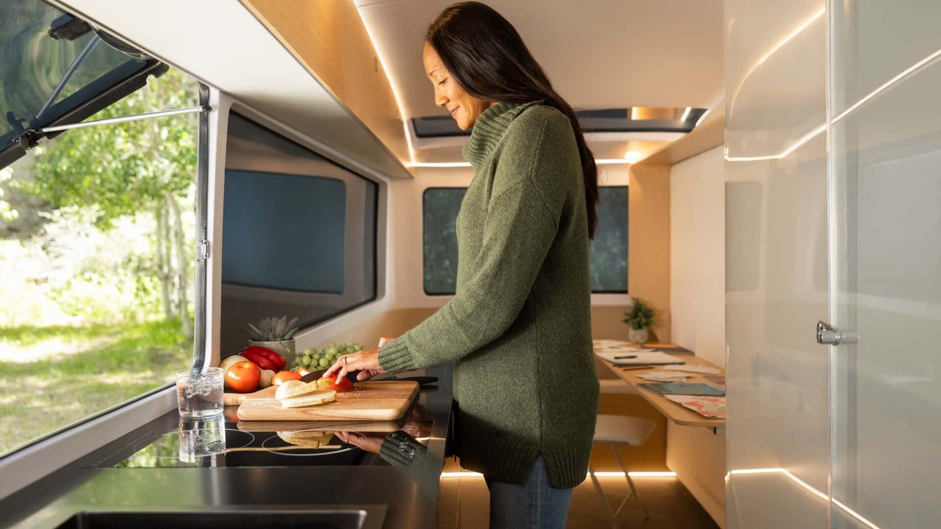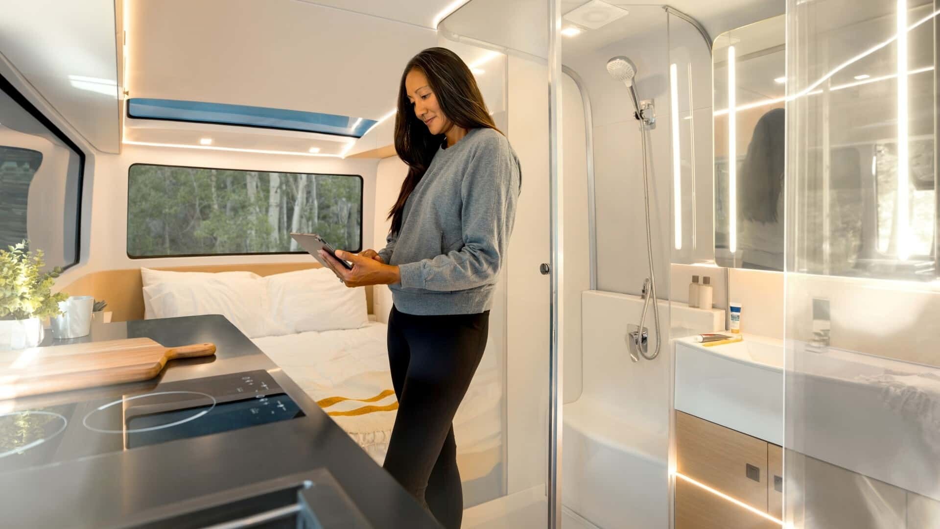它从 45 千瓦时 (kWh) 电池获取电力,该电池可以通过多种方式充电,包括使用屋顶上的太阳能电池板。如果您认为太阳能电池板仅用于给电池充电,那您就错了。当您露营地的邻居羡慕您的拖车时,它们也是一个很好的借口:“当然,亲爱的,我们尊重自然!”同时,正是面板允许您在既定露营地之外露营。在大自然中,远离邻居的窥视。