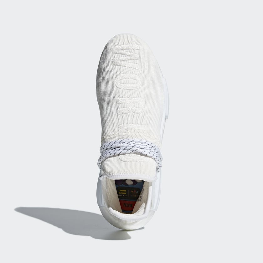 Popolnoma bela tkanina primeknit, bela obloga, vezalke in sloviti vmesni podplat Boost – to je najbolj priljubljena Pharrellova silhueta. Predvidena cena je 250 evrov.