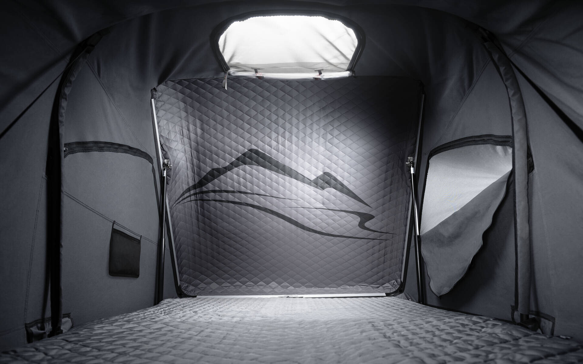 Porsche obljublja spanje z najboljšim razgledom. Tudi zato ker ima šotor okna na obeh straneh in tudi v sami strehi. To sicer ni popolnoma neobičajno ali novo za overland šotore. Stranska okna se lahko odprejo in so opremljena z mrežami proti mrčesu ter dodatno zatemnitvijo. V strešni šotor je integrirana vzmetnica iz penastega materiala visoke gostote. Po navedbah avtomobilskega proizvajalca ponuja ležalno površino 210 krat 130 centimetrov in s tem prostor za do dve osebi. Stene šotora so izdelane iz zračne mešanice bombaža in dobro izolirane od znotraj. “Z vodoodbojnimi zadrgami in ločenim nadstreškom za vstop je šotor zasnovan tudi za deževne dni.