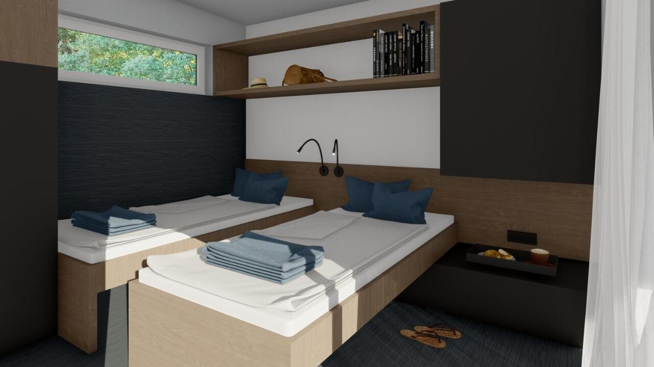 Family Holiday Home Pool hišice so primerne za družine, ki potrebujejo nekaj več prostora. Nahajajo se v objemu gozdov in se ponašajo z zasebnim bazenom. Merijo kar 63m2, terasa pa je velika le pol manj. V njih najdete dve spalnici, kopalnico, velik dnevni prostor in polno opremljeno kuhinjo. Na terasi se lahko predajate sončnim žarkom na za to namenjenih stolih in ležalnikih.