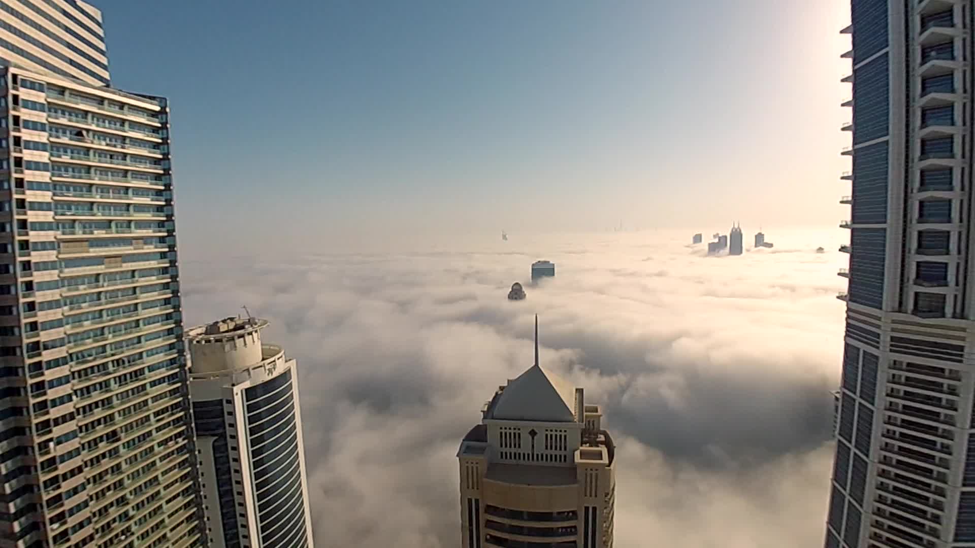 能见度为零,但来自迪拜的一名定点跳伞运动员在看不到地面的情况下,从迪拜 200 米高的摩天大楼的顶部毫不妥协地一跃而下。看完这个片段,你一定会手心出汗!