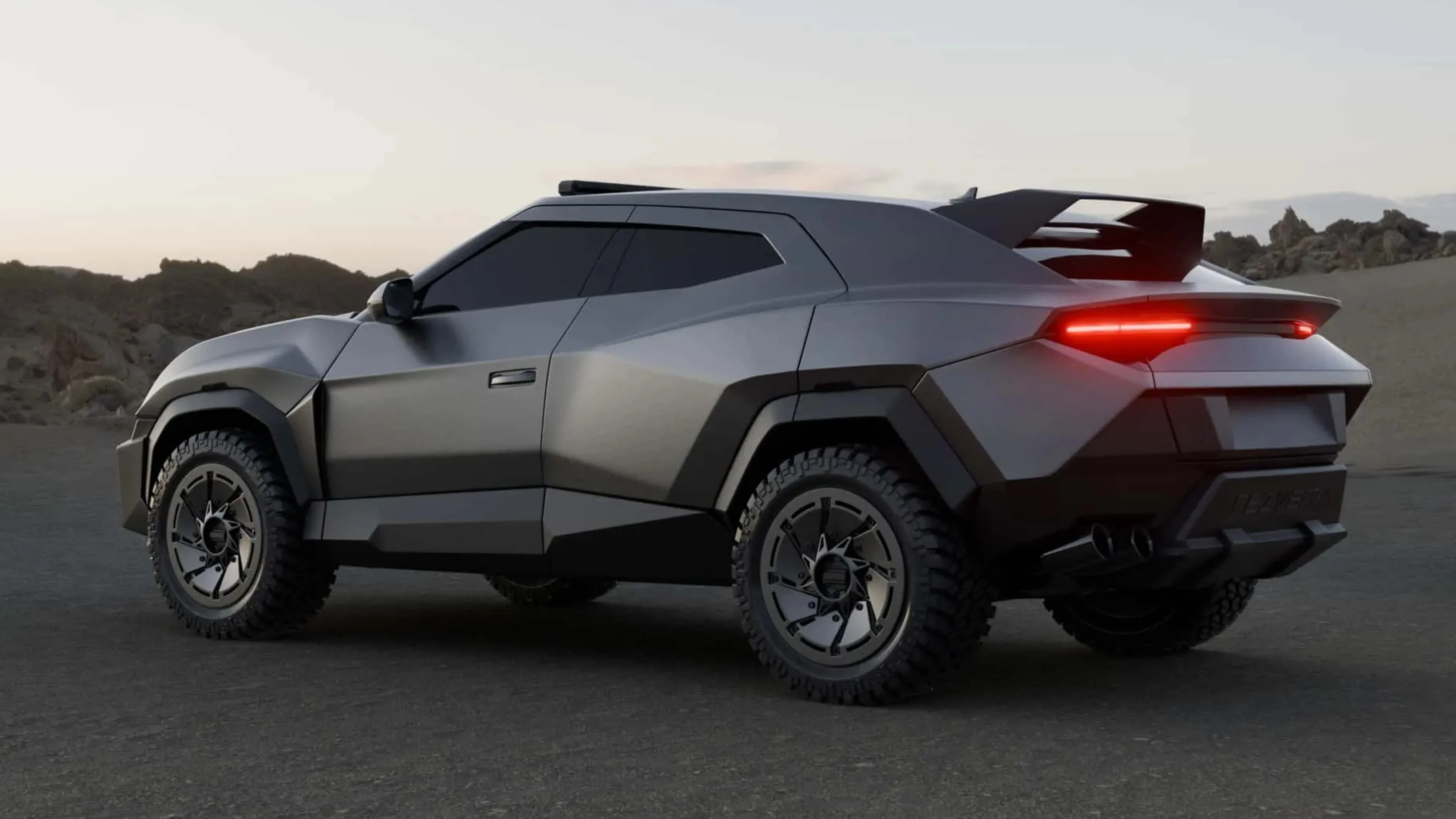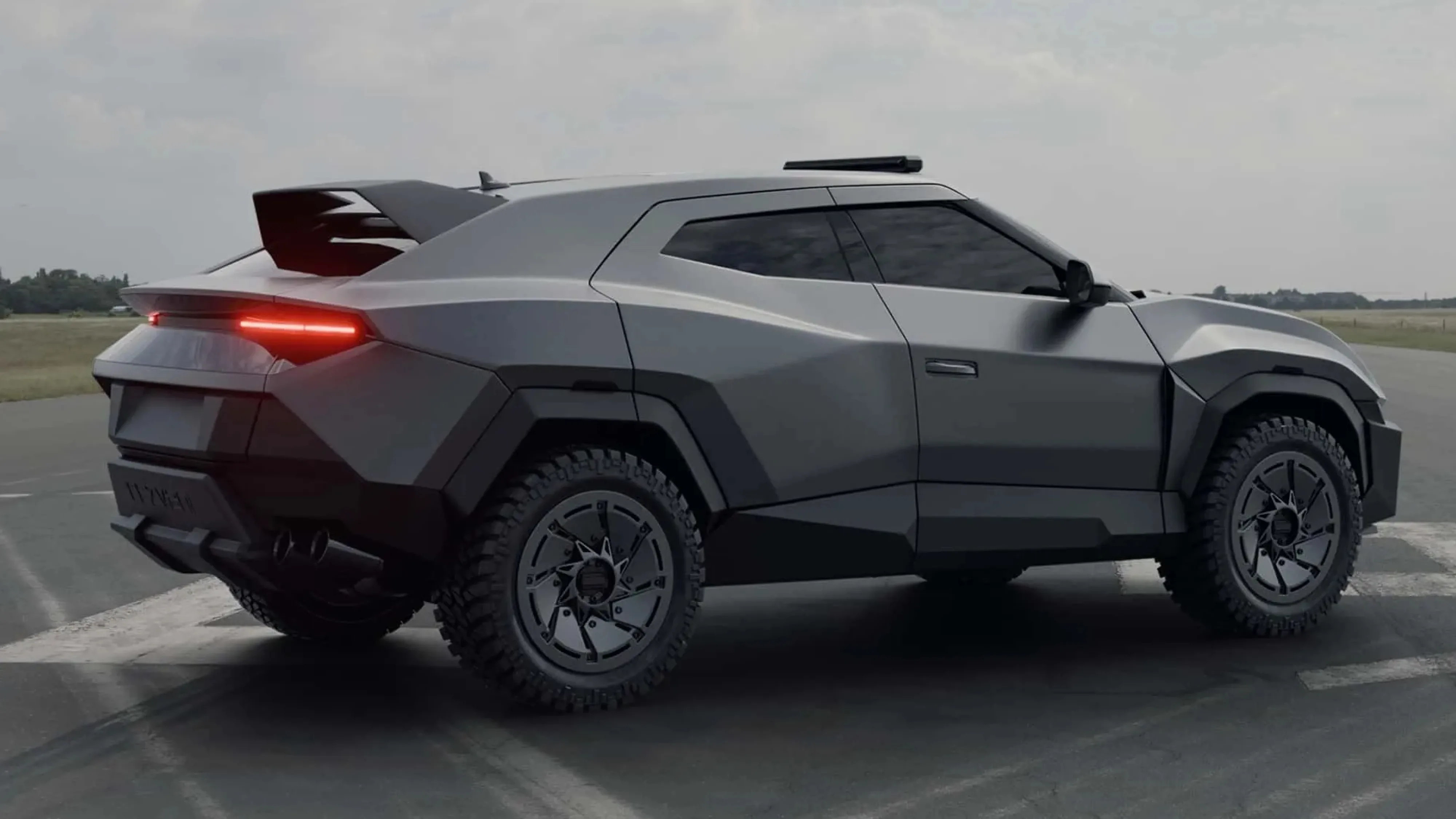这台机器乍一看就像在尖叫:“我并不适合所有人!” – 它具有哑光灰色、锋利的边缘和 LED 照明,看起来更像直升机头灯而不是路灯。车顶上有一个灯条,后面有一个巨大的扰流板。 22英寸的轮毂搭配33英寸的越野轮胎,这清楚地表明这款SUV不仅适合在城市中行驶,还可以克服诸如……油箱坑之类的障碍?