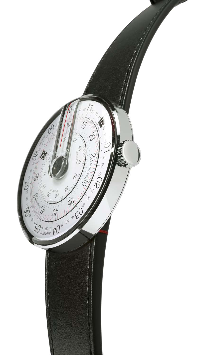 乍一看,Klokers Klok-01 腕表可能看起来像一堆“杂乱无章”的数字,但实际上,这款石英表以一种简洁却又不寻常的方式报时。其设计灵感源自计算尺,采用三个旋转表盘显示精确时间,并配有放大镜,方便读取。
