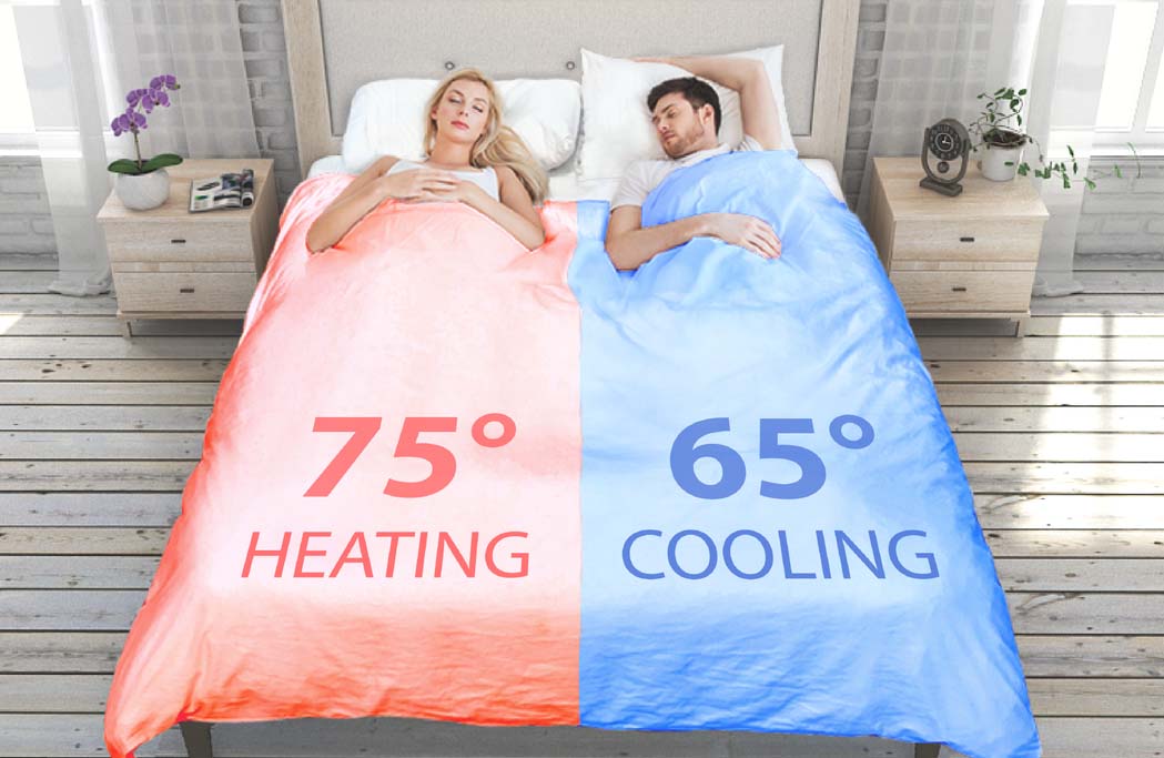 通过 aplikacije lahko nadzirate temperaturo na vsaki strani odeje. Sistem bo namreč na želeno stran odeje pihal topel oziroma mrzel zrak in tako ogrel oziroma ohladil odejo.