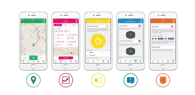 S telefonom se prek brezžične tehnologije 蓝牙 poveže avtomatično, ko pridete v bližino in ko prek namenske aplikacije določite destinacijo, vas z različnimi barvnimi in utripajočimi LED diodami vodi proti cilju po najkrajših in najbolj varnih poteh. Poleg vodenja in zalaganja s klasičnim podatki kot so prevožena razdalja, pokurjene kalorije, čas vožnje, povprečno hitrost in višinska razlika, s senzorji prepozna kdaj zunaj postane toliko temno, da potrebujete luč in intuitivno osvetli pot pred vami brez, da bi bilo treba vam storiti karkoli. Tudi ugasne se sama, naprava pa istočasno služi tudi kot pes čuvaj, saj v primeru, da kdo želi ukrasti vaše kolo, diode na okrogli napravi začno utripati rdeče, oglasi pa se tudi neprijeten zvok, ki tatove bržkone prežene.