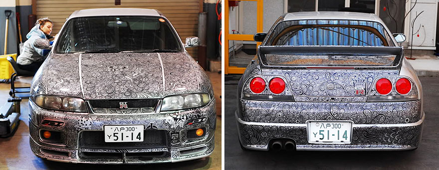 Športnih kupejev je na kupe, zato se njihovi lastniki poslužujejo različnih prijemov, da avto izstopa in upleni kar največ 注意力 na ulici. Zunaj je tako pravo ”bojišče” zanjo, saj je tak konjiček več kot le prevozno sredstvo. In ker je pripadnik ameriške vojske sovražil sivo barvo svojega Nissana Skylina GTR, se je odločil, da ga za hip prepusti umetniškim rokam 你自己的 女性, ki je na pločevino sprva narisala le nekaj osamljenih vzorcev.