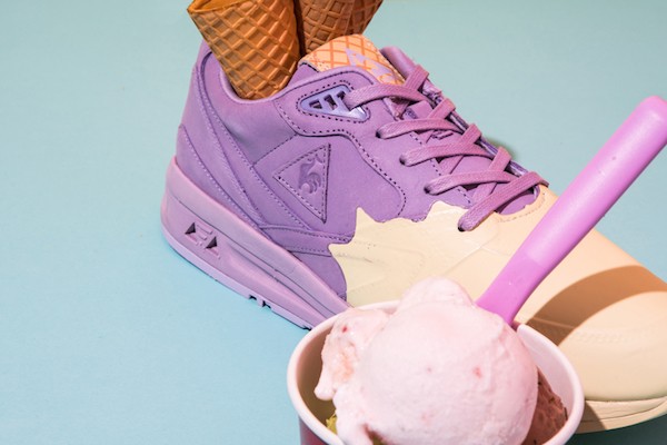 Le Coq Sportif Sorbet 运动鞋饰有融化的冰淇淋印花,满足您的一切需求 – 大胆、充满幽默感,同时又无比舒适。柔和的色彩只需要一瞥即可。它们有三种版本:白粉色、米绿色和黄紫色。