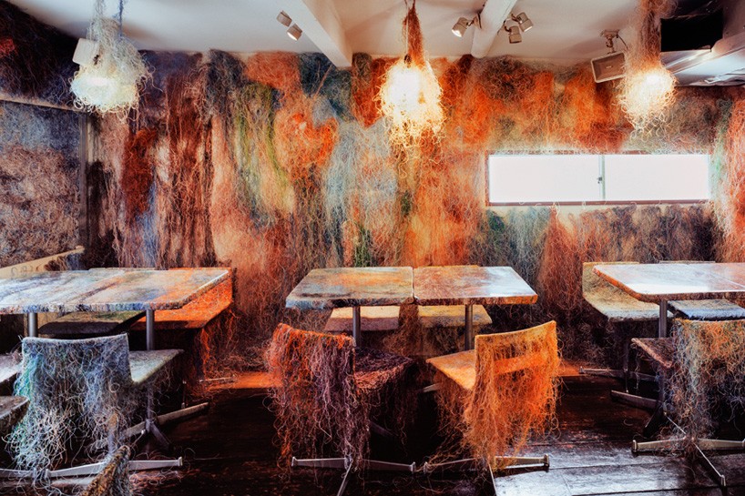 在东京郊区吉祥寺的一条小巷里,建筑师隈研吾和他的同事们开设了一家餐厅兼酒吧 Tetchan Yakitori 酒吧,店内装饰着彩色电缆。该空间主要装饰由回收材料制成的物品,包括以太网电缆,这给餐厅带来了不寻常的外观。与此同时,吧台,包括椅子和桌子,都是由亚克力副产品的熔化废料制成的,赋予它们透明的外观。