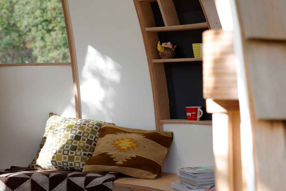 The Escape Pod lahko odigra vlogo samotnega otoka, saj boste v tej mini hišici lahko izolirani od zunanjega sveta. Bivak, ki spominja na jajce, sestavlja ogrodje iz brezove vezane plošče ter evropskega hrasta. Zunanjost je oblečena v cedrove skodle, kar videz Escape Poda rahlo približa stoječemu storžu.