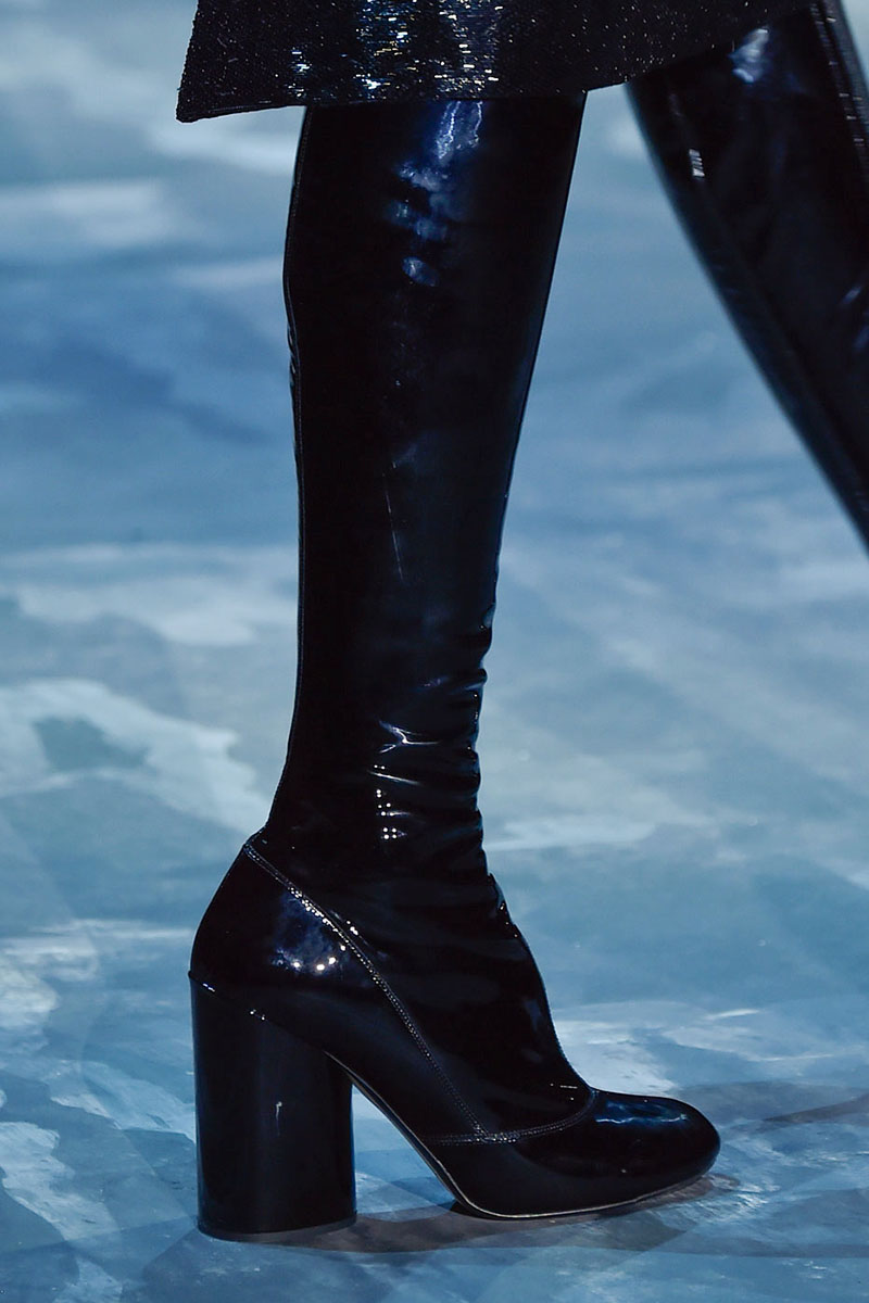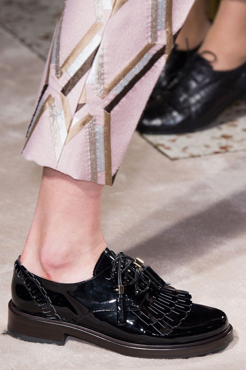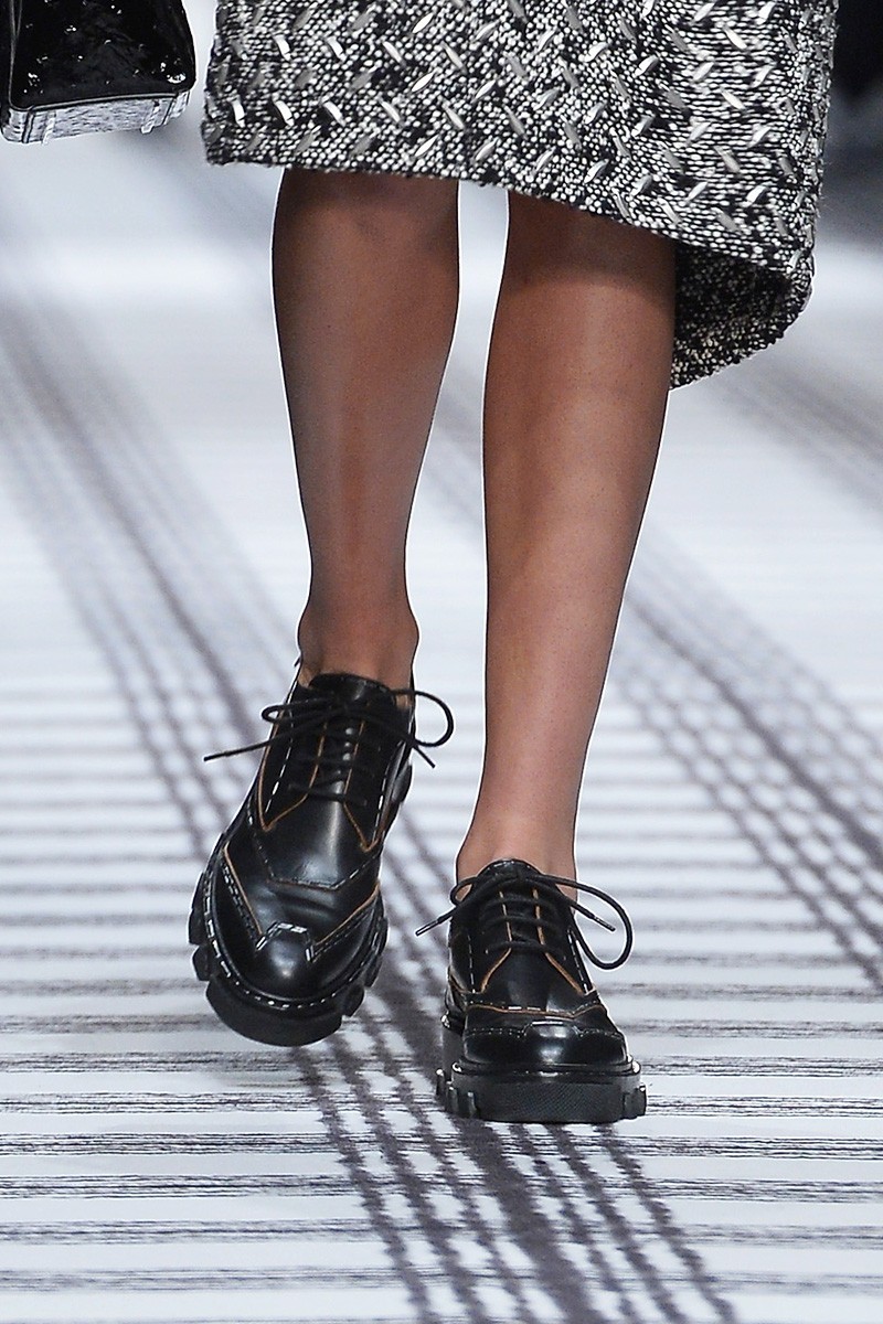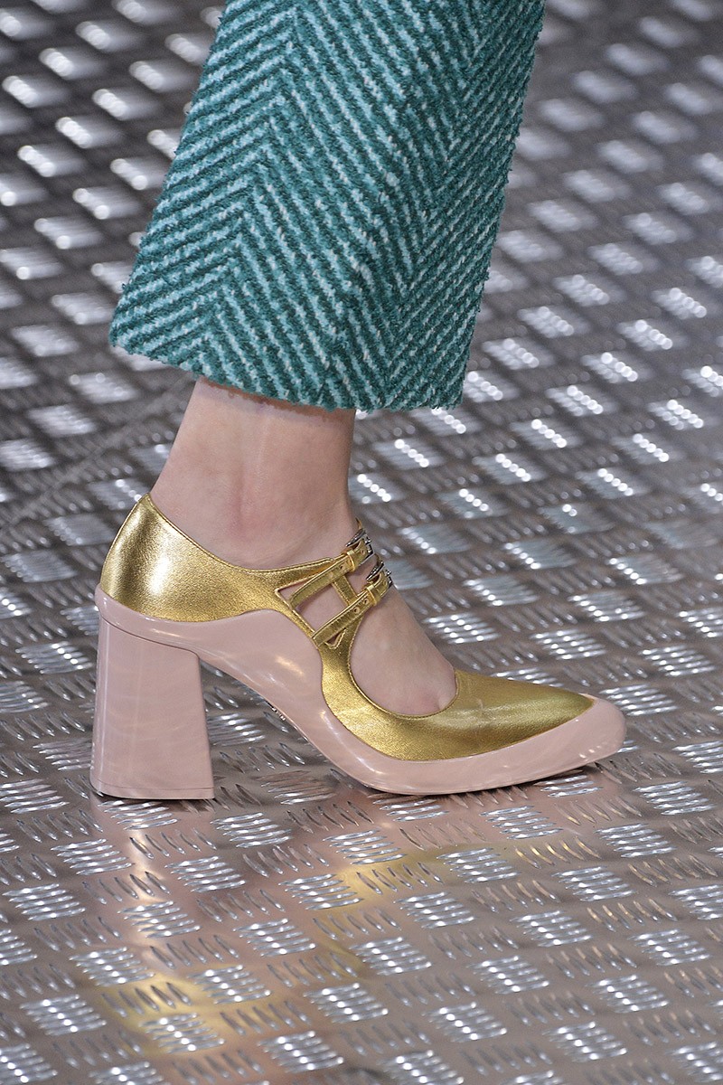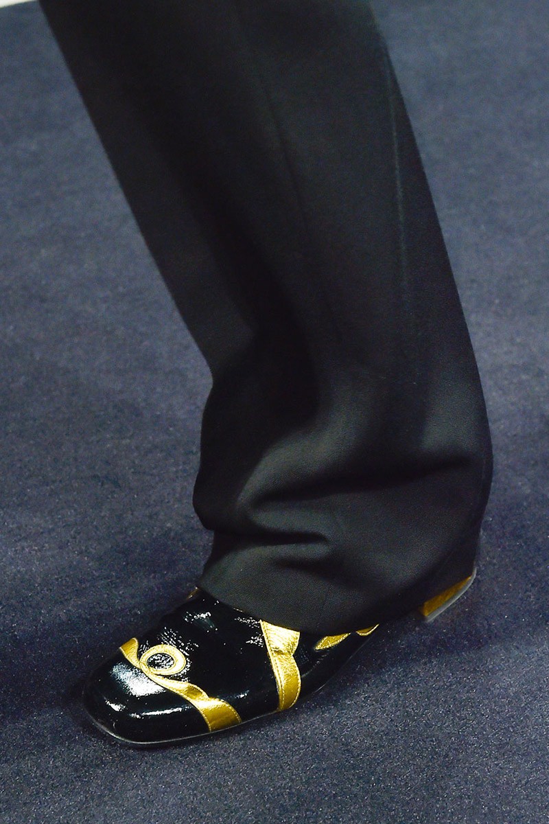 Oblikovalci so tej jeseni namenili veliko zlate, pozlačene note, čevljem dodali svetleče elemente, ki se razpenjajo vse od grških boginj, do deških brogues in do disko plesalcev.