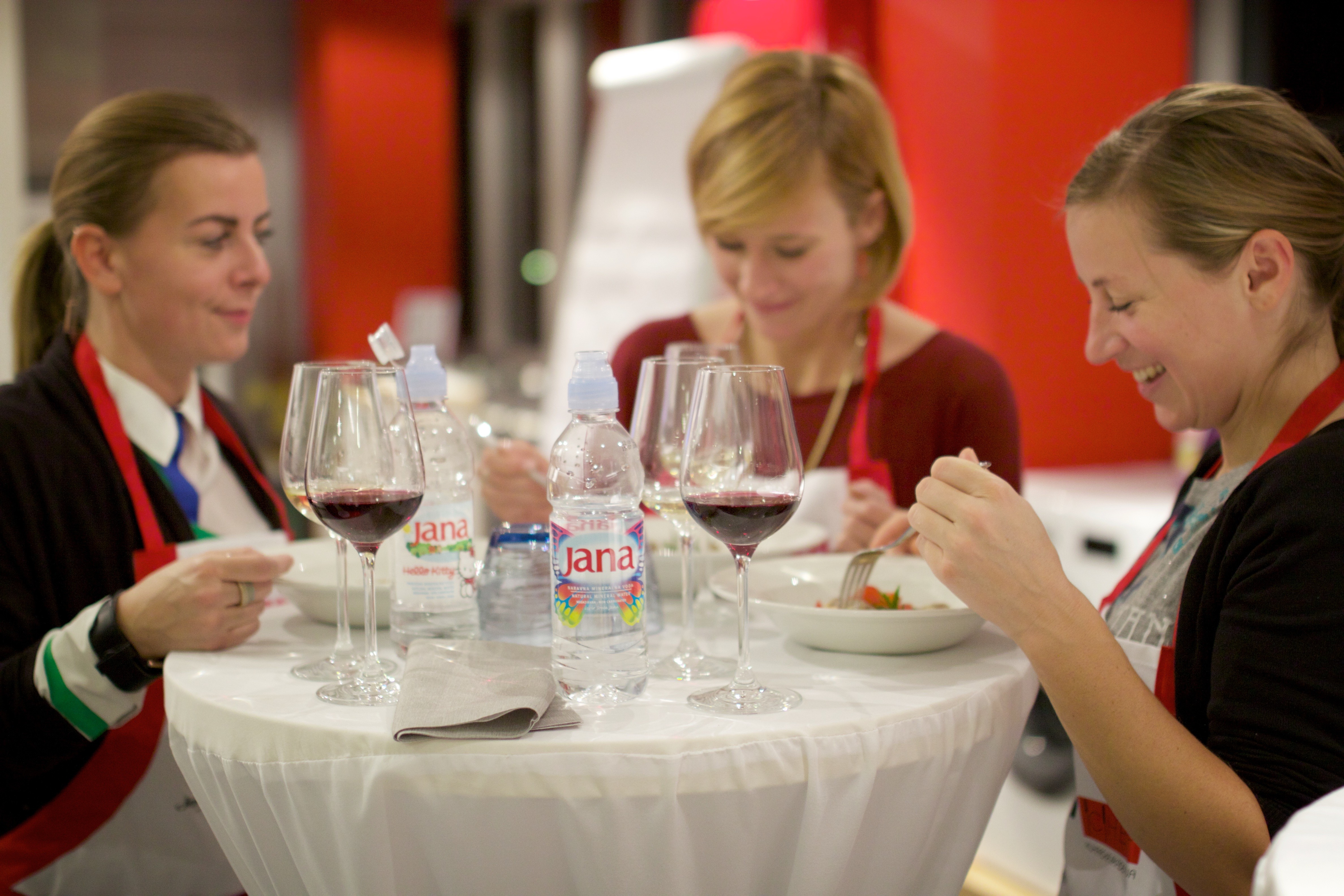 Spretno in z obilico humorja nas je popeljal in angažiral pri pripravi hobotnice v solati, kostanjevih njokov z gamberi in ribo, pečenega krompirja in govejega zrezka ter sladice s kozjim sirom, ki je lepo zaokrožila tri urice druženja ob štedilniku. Ob hrani pa je naše brbončice razvajalo tudi različno vino in uradna voda dogodka 坑.