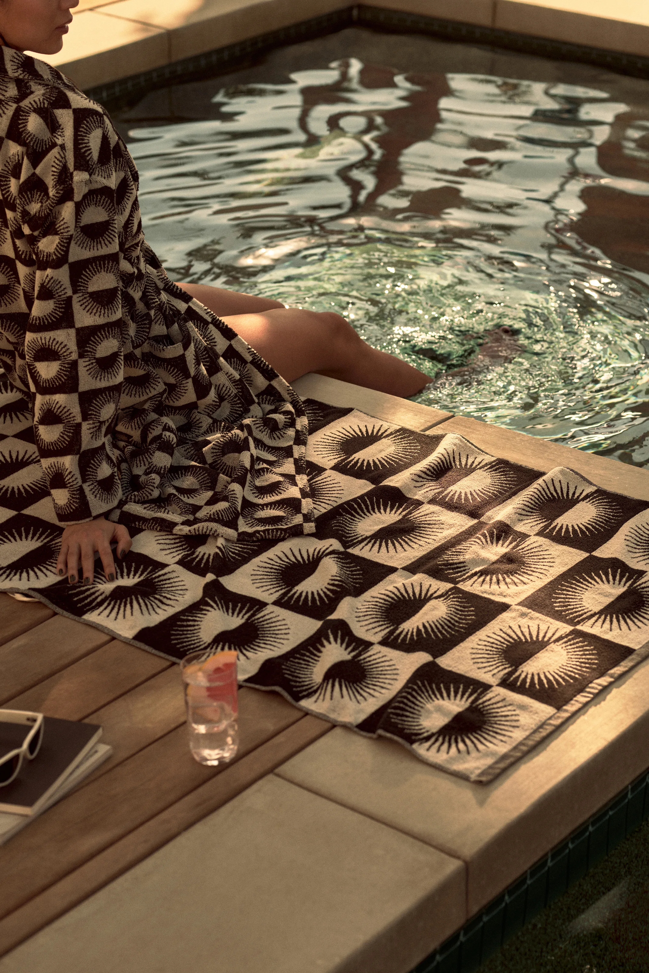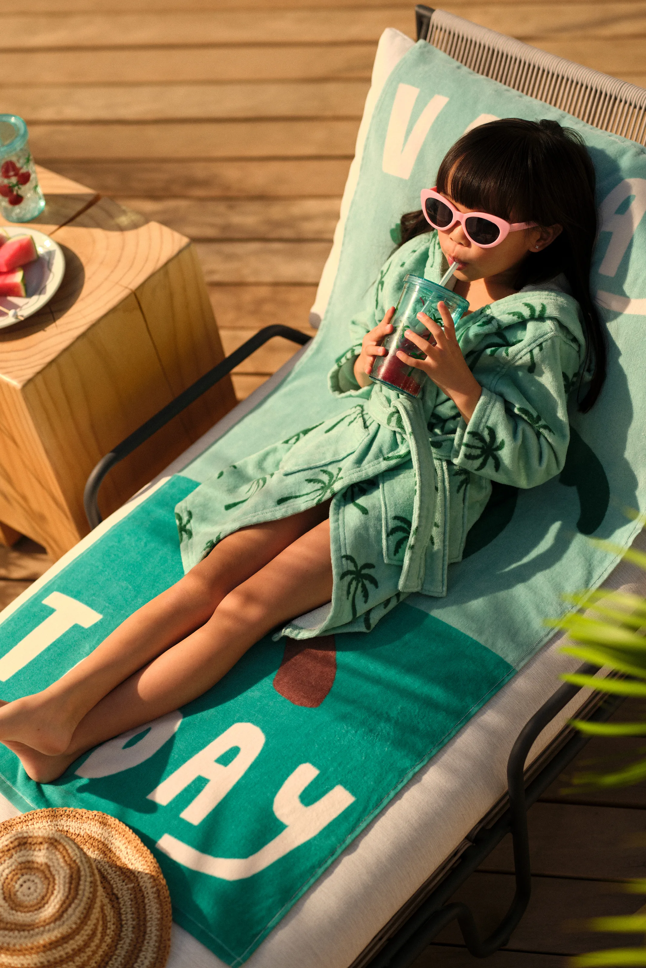对于那些喜欢搭配的人来说,这里有单色几何设计的浴袍、毛巾和帆布包。孩子们会喜欢带有棕榈树图案的帽子和毛巾,而更加爱玩的孩子则会喜欢鲨鱼或长颈鹿形状的帽子。更糟糕的是?长颈鹿形状的毛巾布包,可容纳所有夏季必需品。